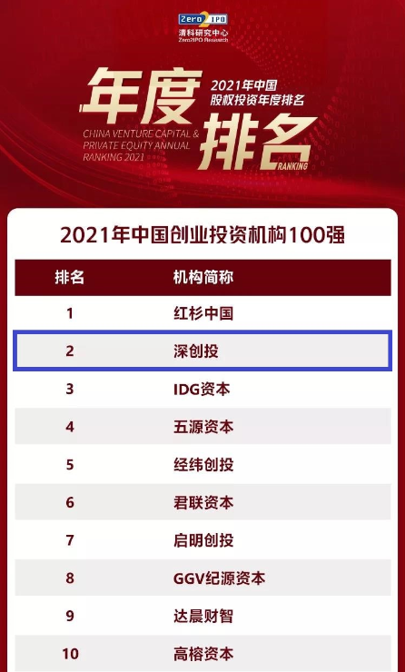 2021年中国创业投资机构100强第二名(本土创投第一名)