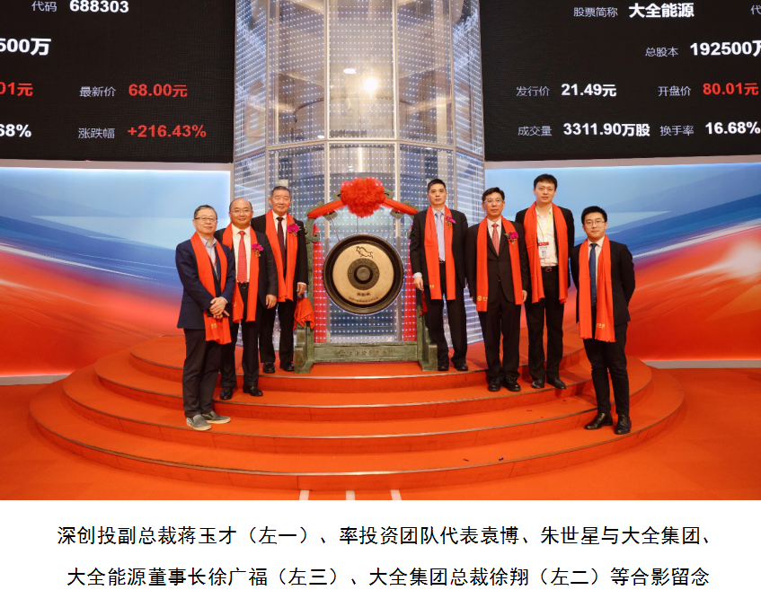 7月22日,深圳市创新投资集团(简称“色色啦 ”)已投企业新疆大全新能源股份有限公司(简称“大全能源”,证券代码:688303)在上海证券交易所科创板挂牌上市。