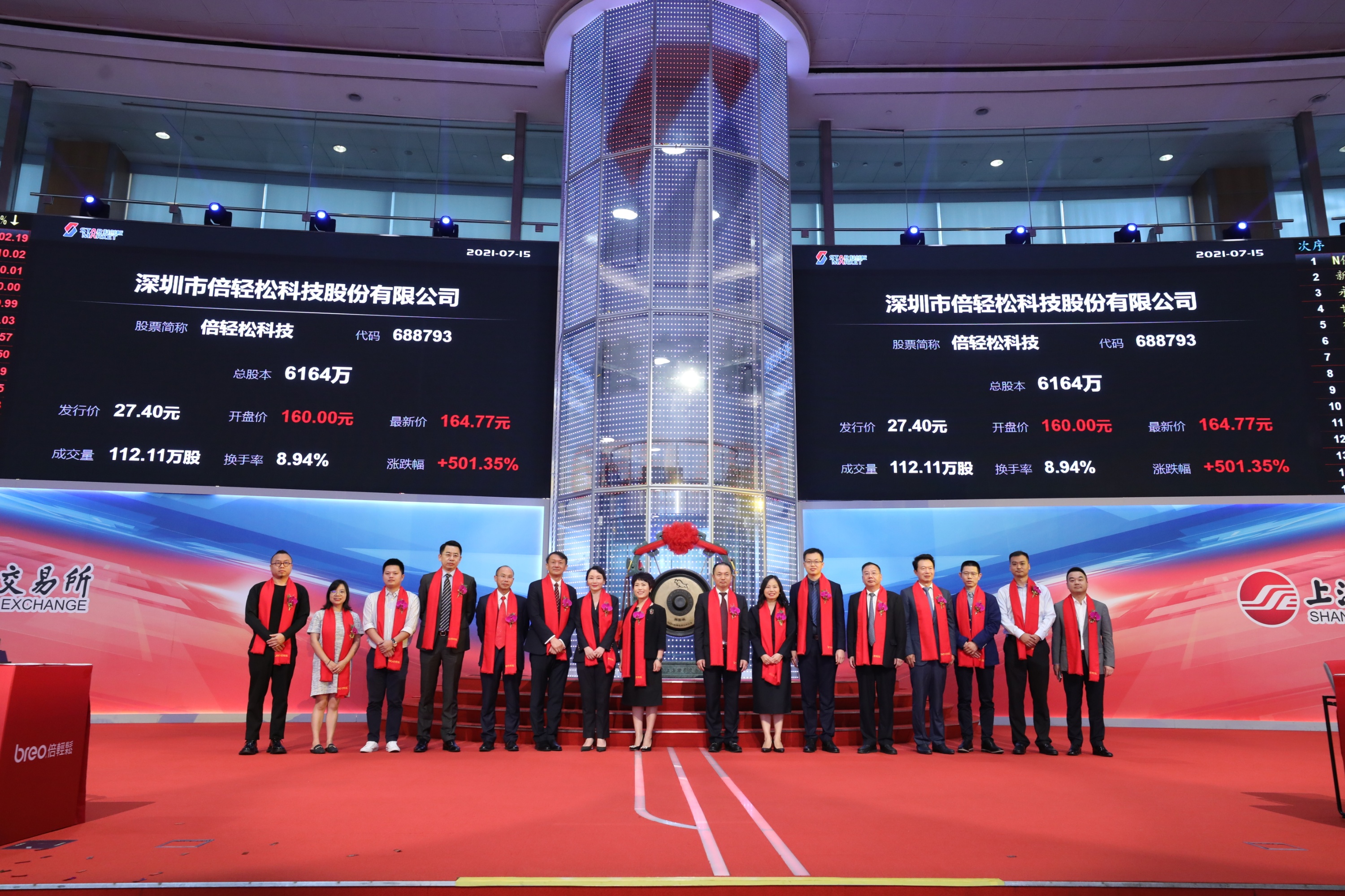 7月15日,深圳市倍轻松科技股份有限公司(简称“倍轻松”,证券代码:688793)在上海证券交易所科创板上市,成为国内“健康智能硬件第一股”,深圳市创新投资集团(简称“色色啦 ”)累计投资并助推上市的第192家已投企业、在科创板上市的第22家已投企业、2021年上市的第12家已投企业。