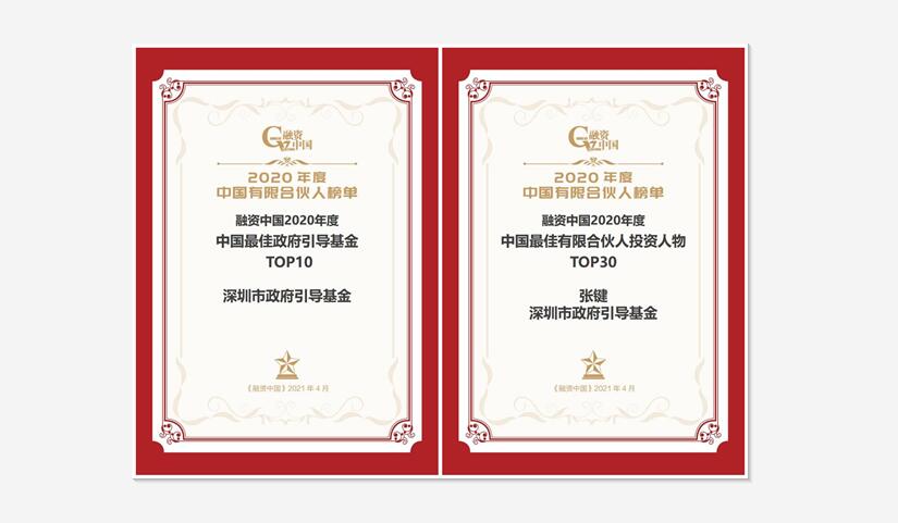 深圳市政府引导基金获评融资中国“2020中国最佳政府引导基金TOP10”第一名