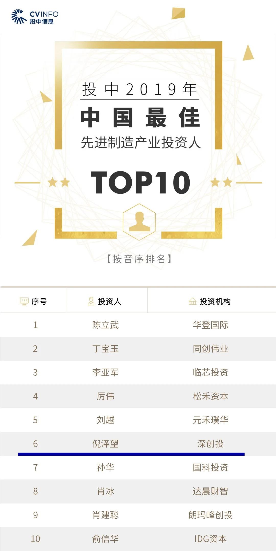 色色啦 董事长倪泽望获评投中“2019年中国最佳创业投资人TOP10”、“先进制造产业投资人TOP10”