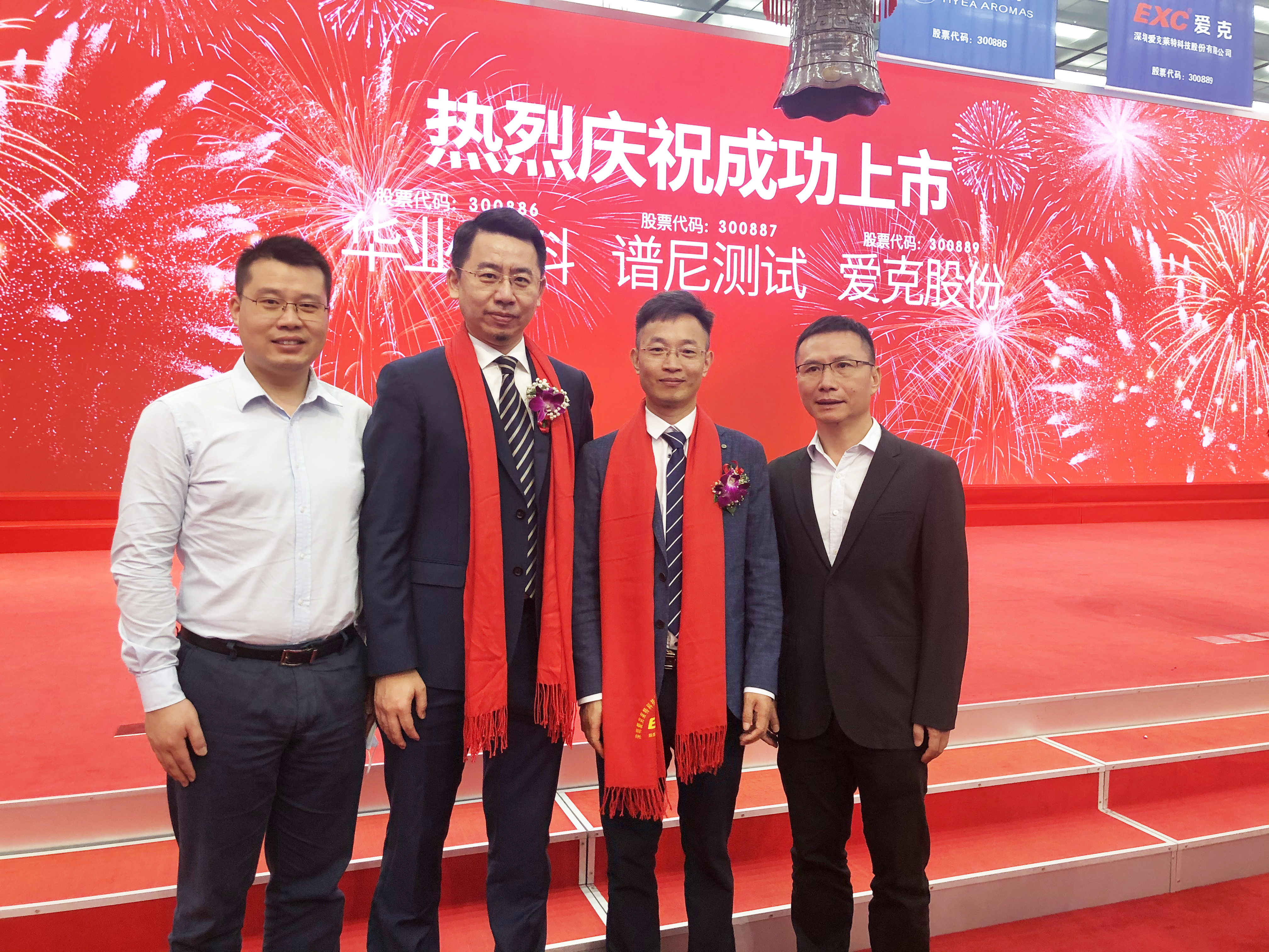 与爱克股份董事长谢明武(右二)在上市仪式现场合影