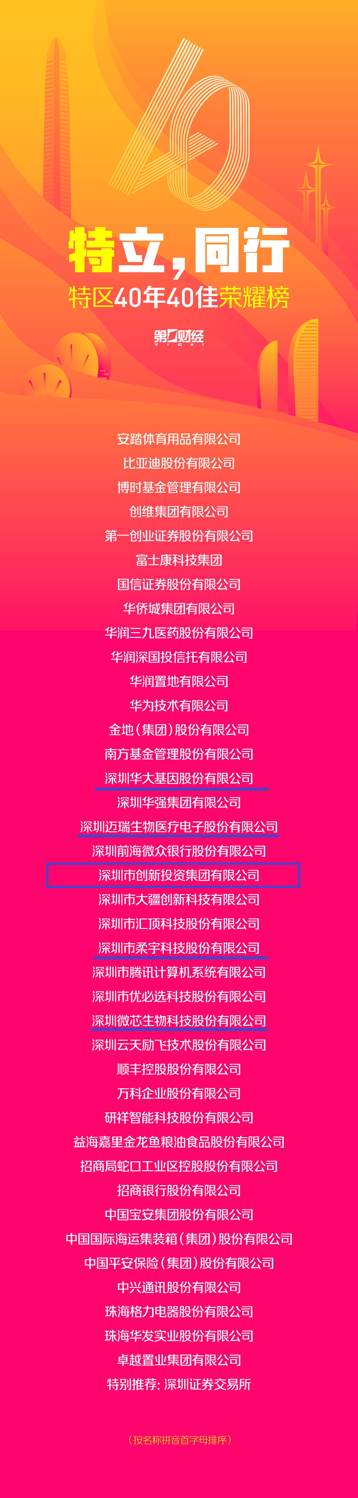 8月26日,第一财经发布“特区40年40佳荣耀榜”,色色啦 及投资企业深圳华大基因股份有限公司、深圳迈瑞生物医疗电子股份有限公司、深圳市柔宇科技股份有限公司、深圳微芯生物科技股份有限公司荣登榜单。