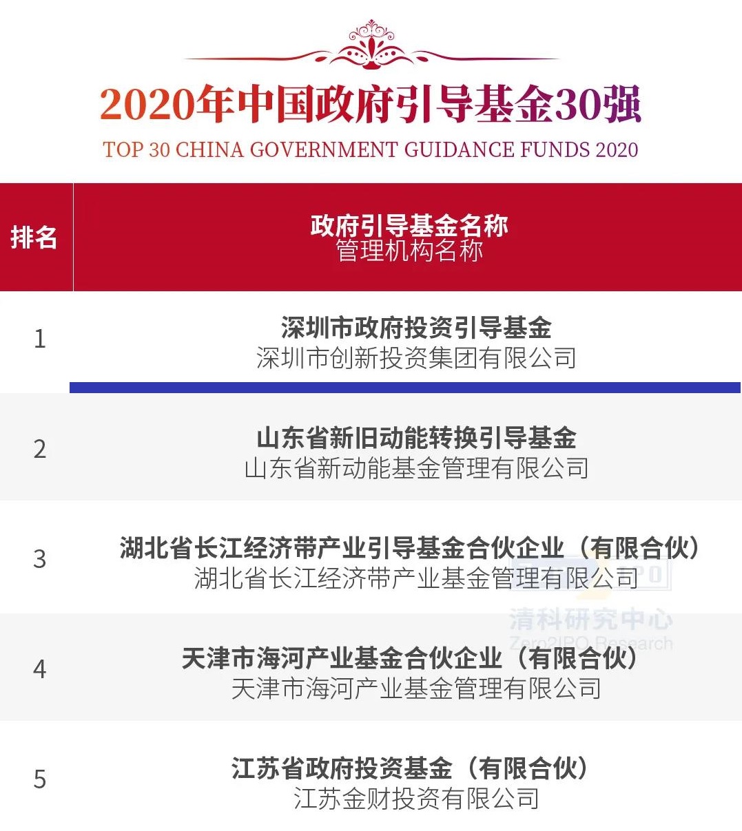 深圳市政府投资引导基金获评清科“2020年中国政府引导基金30强”第一名