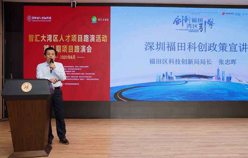 路演开始前,深圳市福田区科技创新局局长张忠晖从科技创新发展、科技企业高成长、集成电路产业、生物医药产业、新一代人工智能产业、区块链产业、招商引资、总部经济发展八个方面进行了福田区科创政策宣讲。