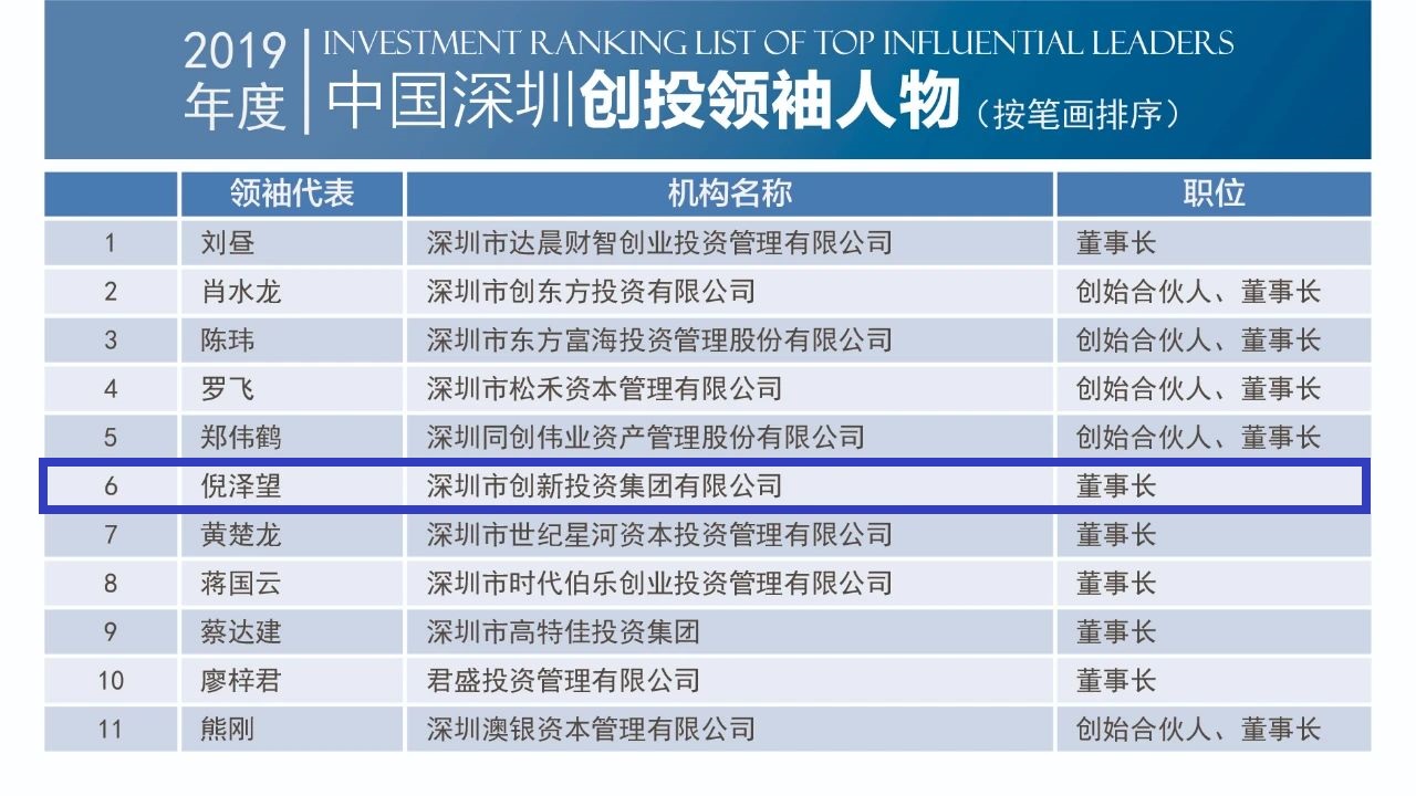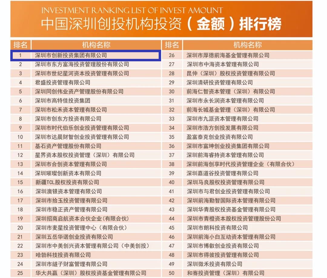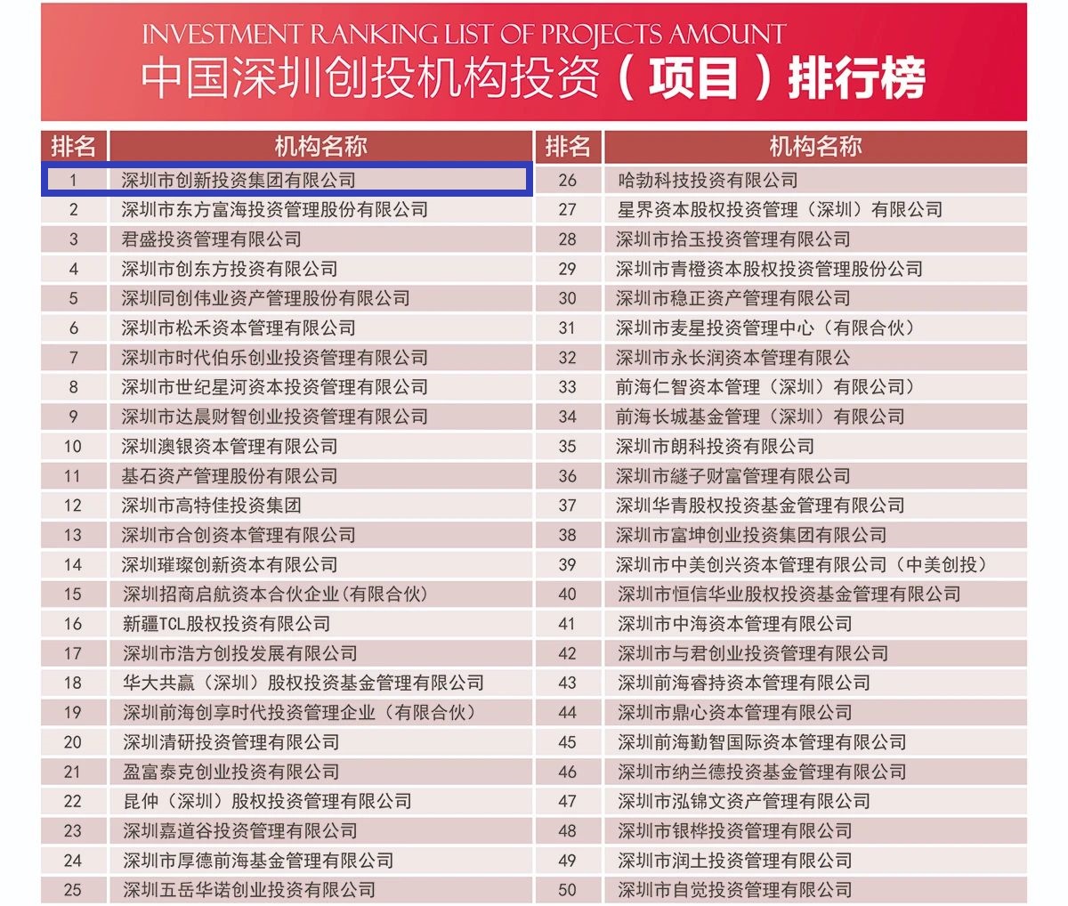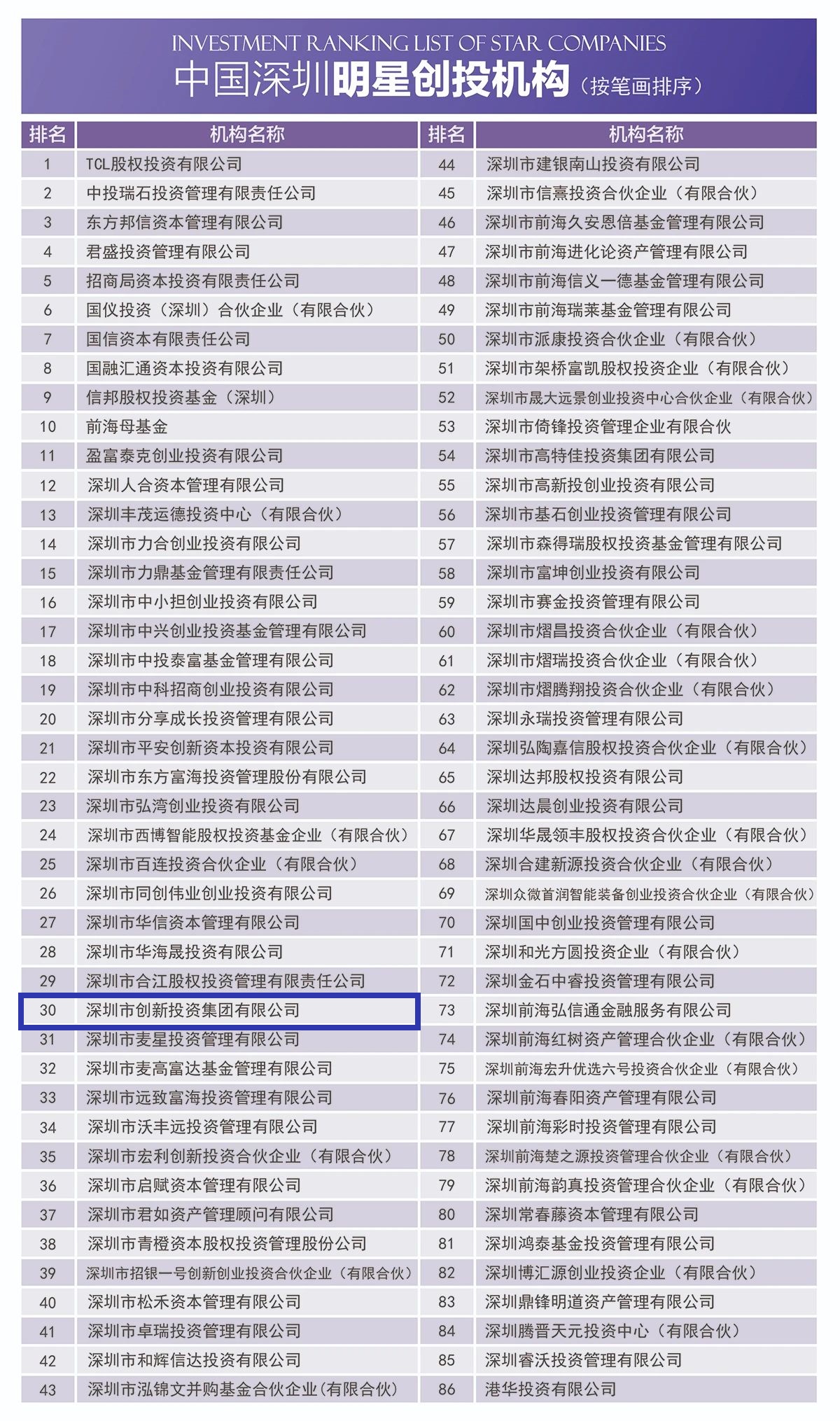 以下榜单截图原图来自“深圳市投资商会”微信公众号: