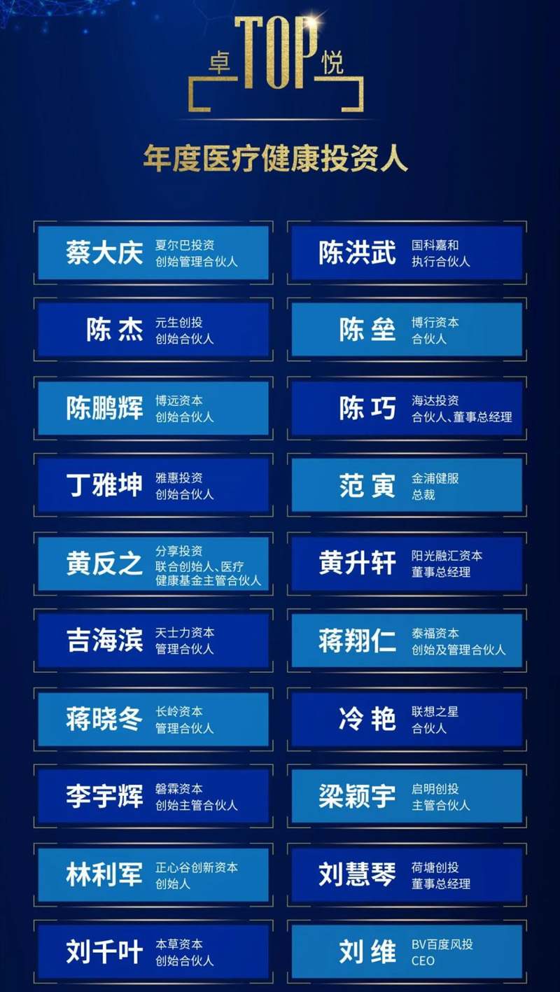 医疗健康投资卓悦榜评选2017年首次推出,目前已成为医疗健康投资行业评估企业市场价值和机构品牌影响力的重要风向标之一。本次评选,“年度最佳投资机构”、“年度医疗健康投资人”等奖项是根据公开披露资料和各机构报名信息,对各医疗健康投资基金的投资活跃度、交易数量、交易金额以及投资回报等客观指标进行梳理,评选产生。