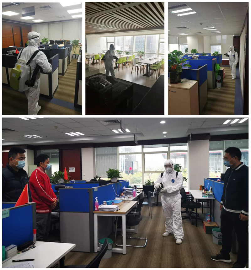 五、做好消毒工作,确保办公场所安全。春节期间,公司安排专业公司对办公场所、食堂进行了全面清洁消毒。目前,每天安排办公室值班人员负责开窗通风工作,每天晚上安排专业人员对办公场所进行消毒,全力提供安全可靠的办公环境。