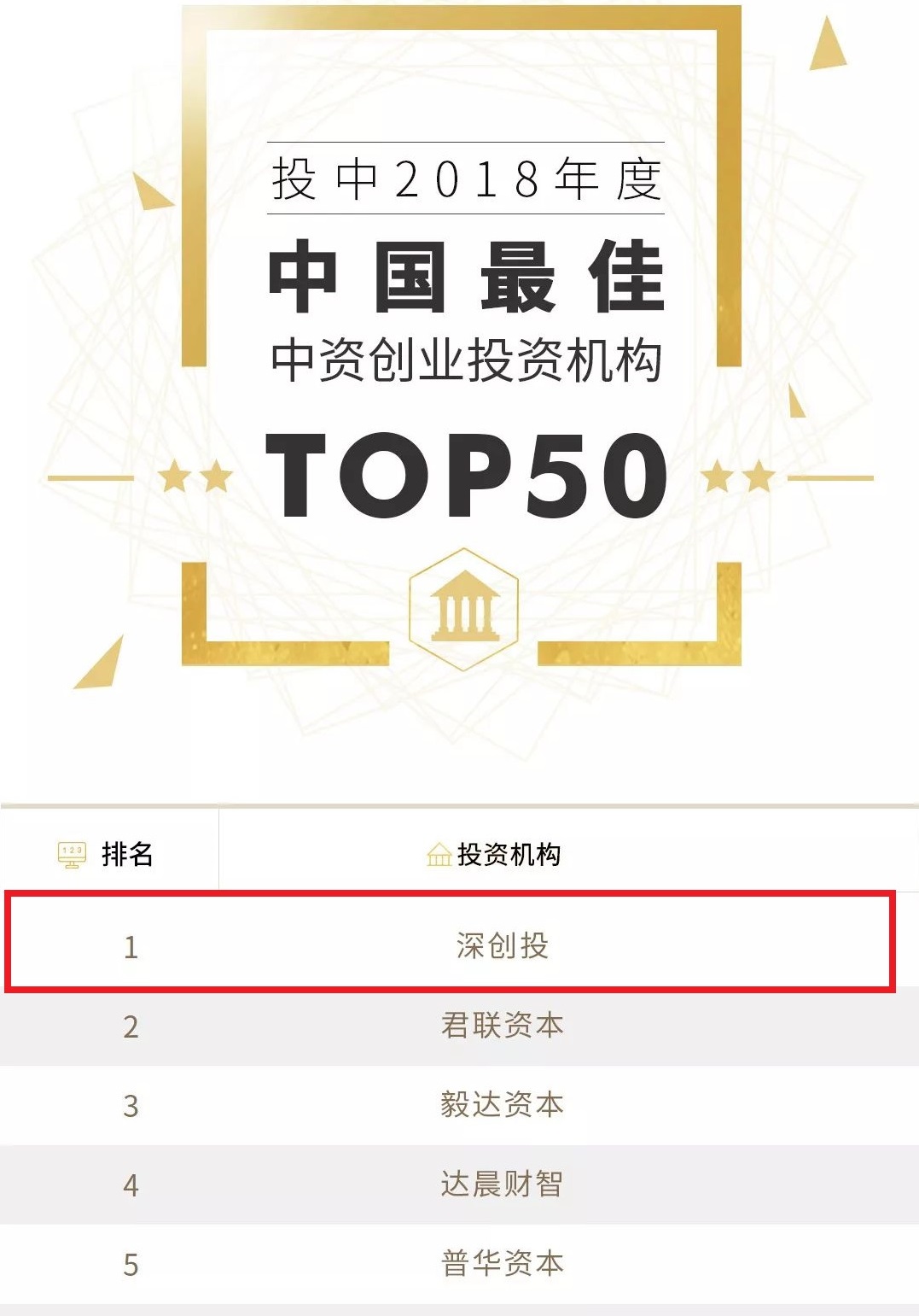 “2018年度中国最佳中资创业投资机构TOP50”第一名