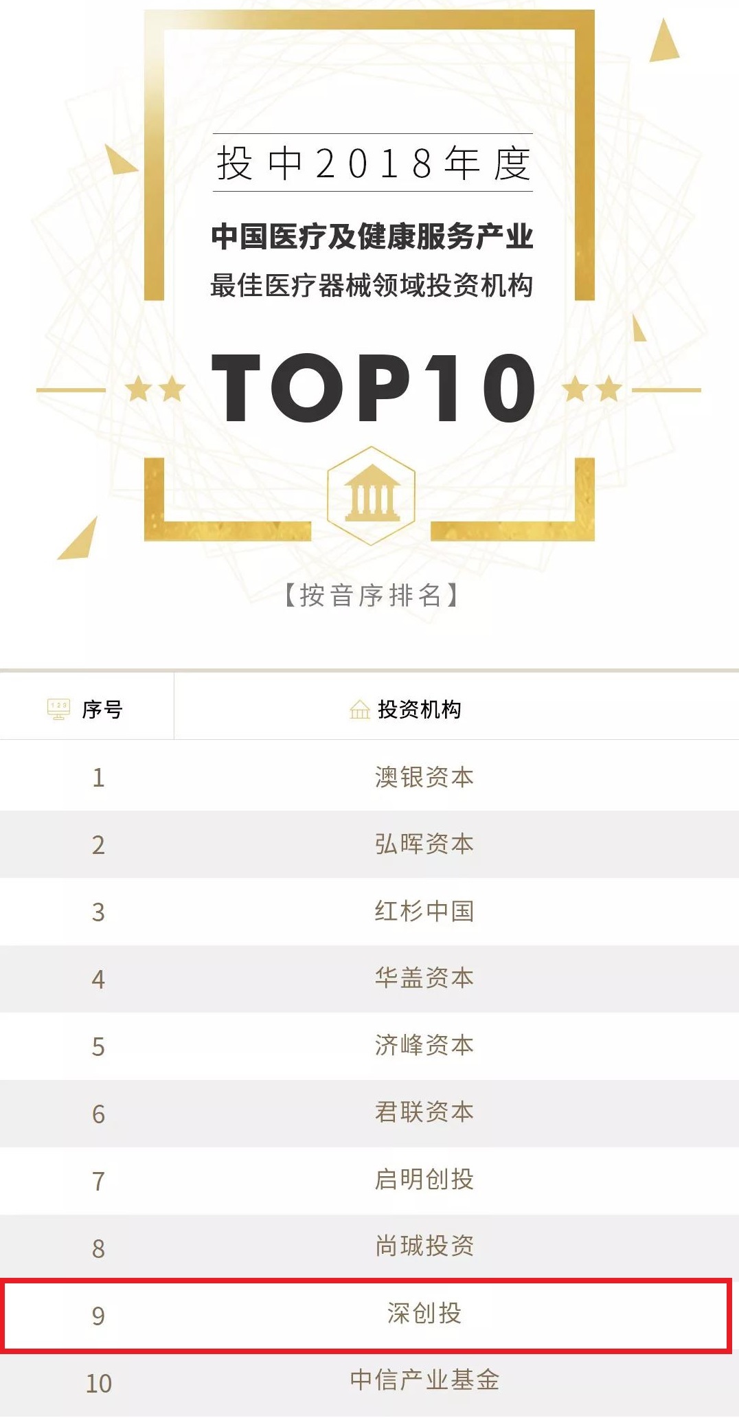 “2018年度中国医疗及健康服务产业最佳医疗器械领域投资机构TOP10”