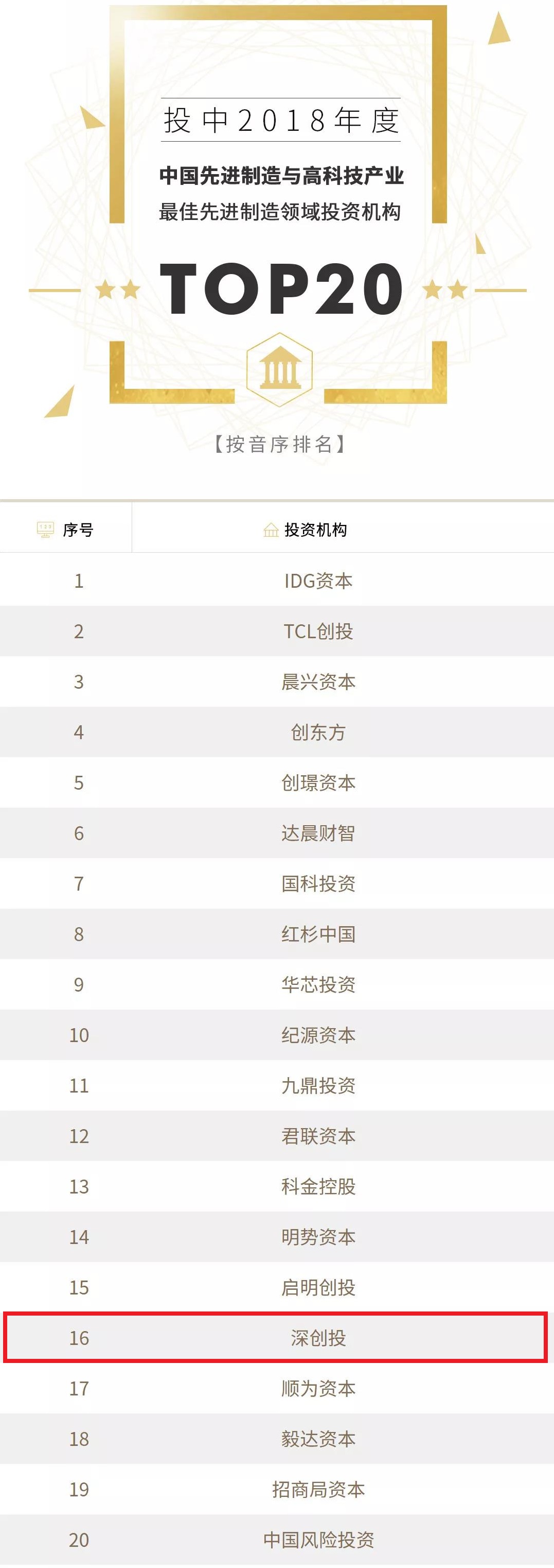 “2018年度中国先进制造与高科技产业最佳先进制造领域投资机构TOP20”
