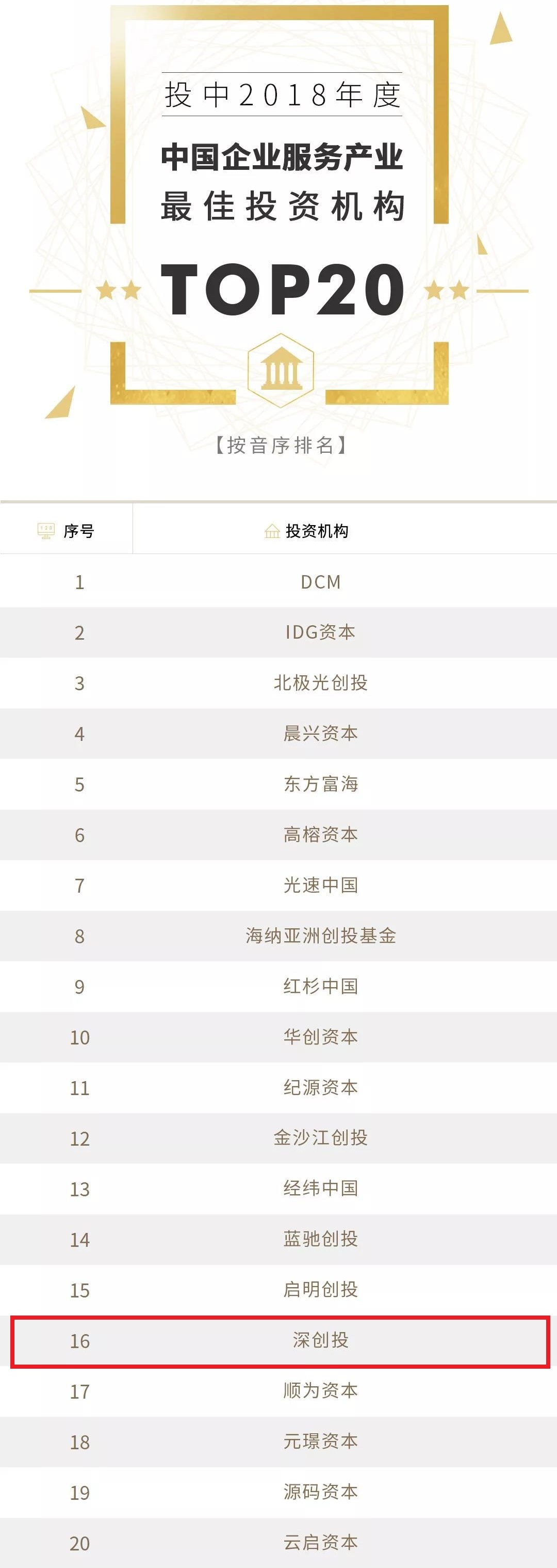 “2018年度中国企业服务产业最佳投资机构TOP20”