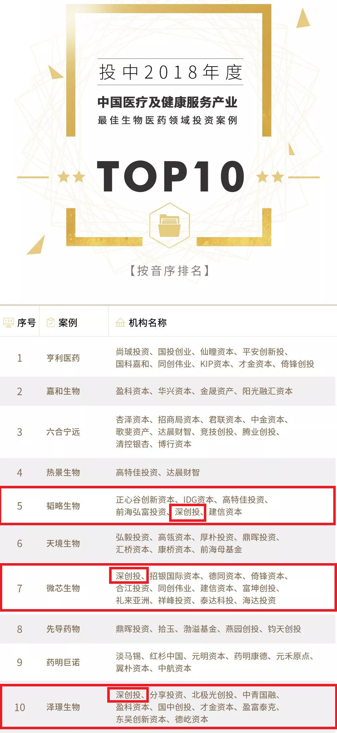 投资案例“韬略生物”“微芯生物”“泽璟生物”——2018年度中国医疗及健康服务产业最佳生物医药领域投资案例TOP10