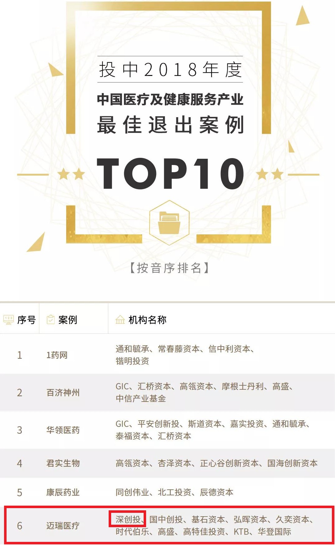 投资案例“迈瑞生物”——中国医疗及健康服务产业最佳退出案例TOP10