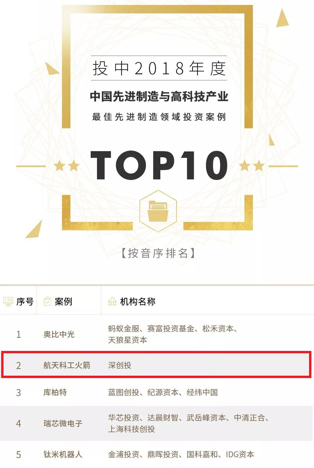 投资案例“航天科工火箭”——2018年度中国先进制造与高科技产业最佳先进制造领域投资案例TOP10