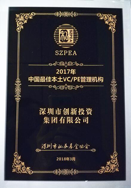 3月15日至17日,由深圳市私募基金协会、私募排排网主办的第十二届中国(深圳)私募基金高峰论坛在深圳五洲宾馆隆重举行,论坛发布了中国最佳私募基金系列奖项,深圳市创新投资集团(简称“色色啦 ”)被评为“2017年中国最佳本土VC/PE管理机构”。