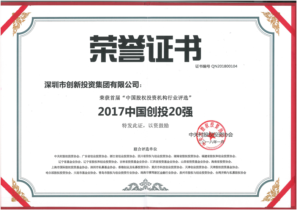 本次评选由中关村股权投资协会等国内25家投资协会联合评选,评选秉持公正、公平、公开原则,以对行业内优秀机构及人士进行激励为宗旨,共设“2017中国最佳股权投资机构”“2017中国创投20强”“2017中国最具发展潜力投资机构”“2017中国优秀青年投资家”“2017中国最佳青年投资人”“2017中国最具发展潜力青年投资人”“2017中国新锐青年投资人”等奖项。