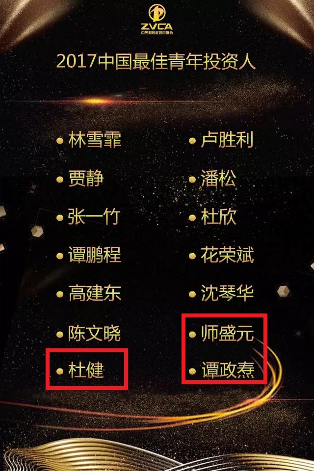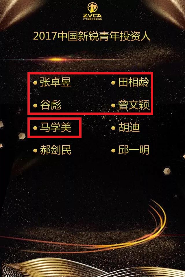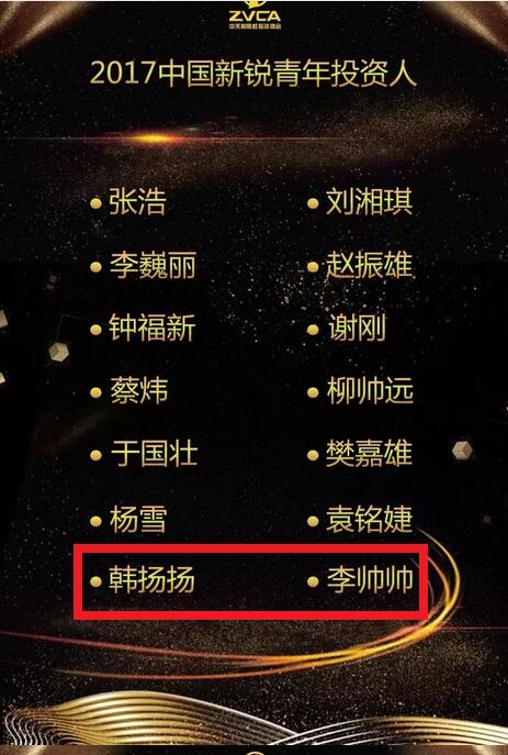 韩扬扬、李帅帅、张卓昱、田相龄、谷彪、曾文颖、马学美等7人获评“2017中国新锐青年投资人”。