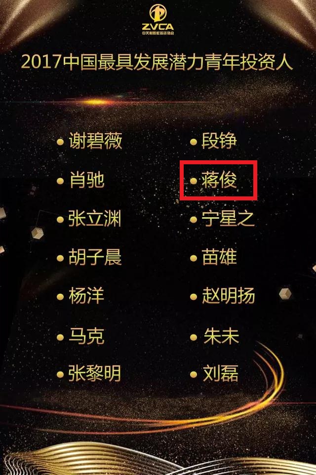 蒋俊、梁振华、黄瑛、王博、周小康、贾学鹏、刘晓川、刘超等8人获评“2017中国最具发展潜力青年投资人”;