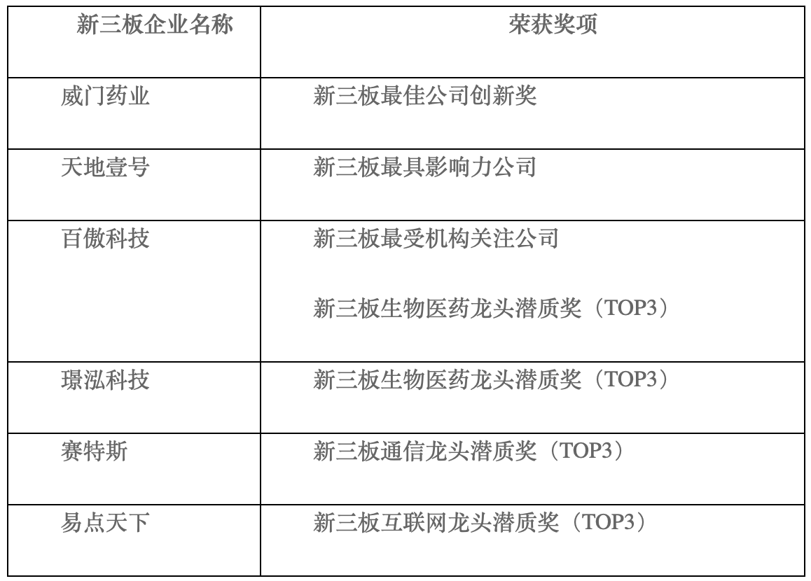 本届“华新奖”奖项包括“感动新三板人物奖”、“最佳投资机构奖”、“最佳券商研究机构奖”及“行业龙头潜质奖”等21项大奖,获奖企业比例不到1%,竞争激烈。