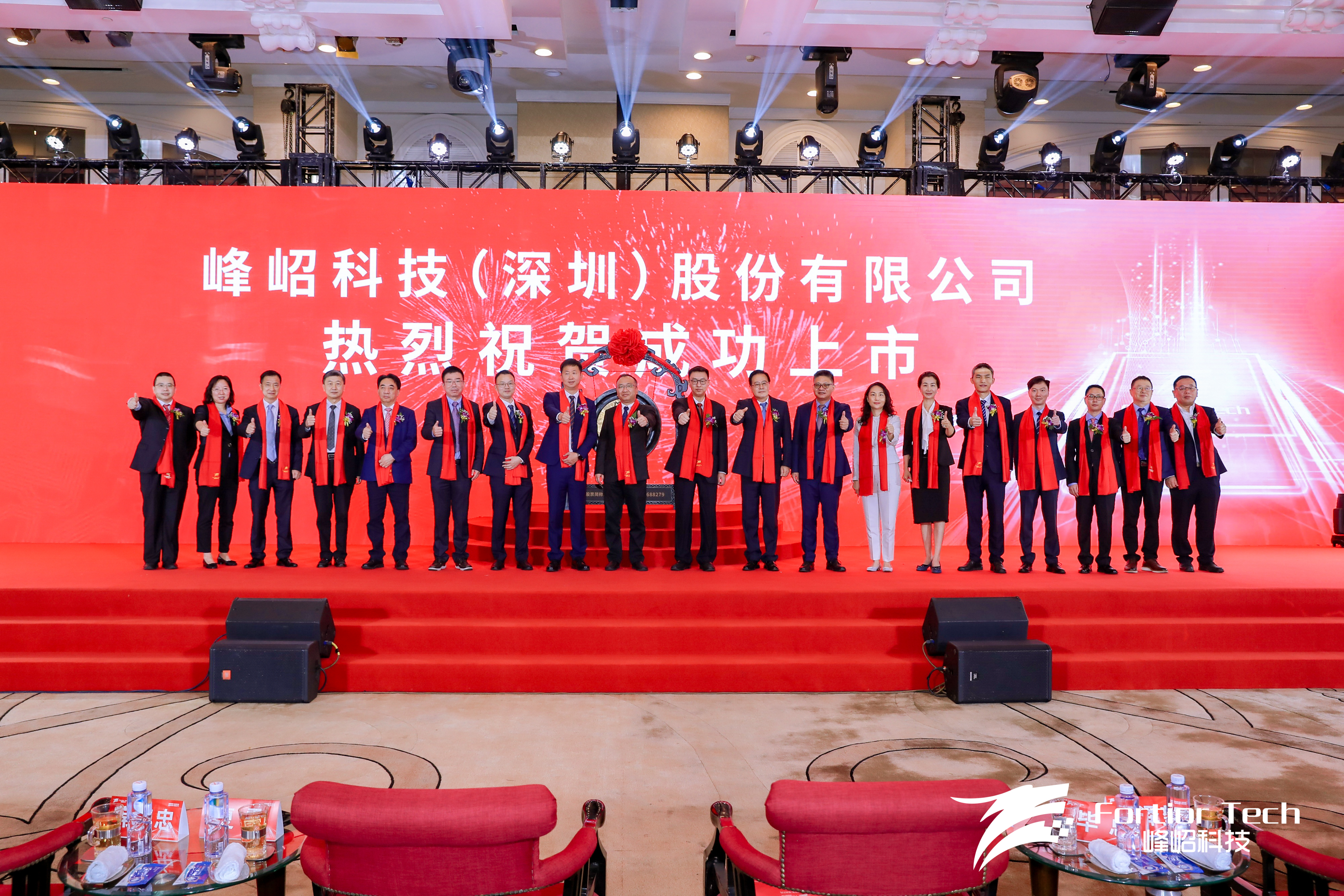 与峰岹科技董事长兼总经理毕磊在上市仪式现场合影留念