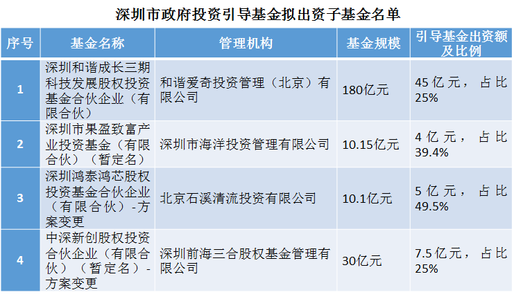 关于深圳市政府投资引导基金拟出资子基金公示的通知