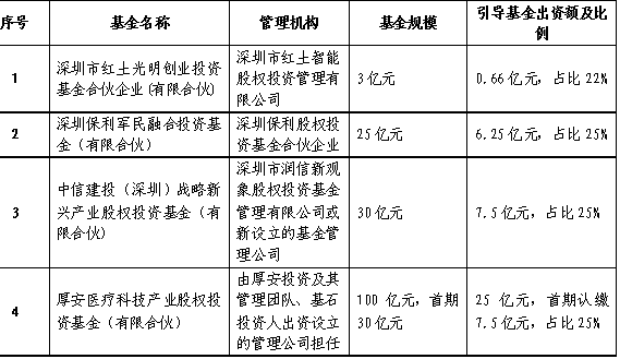 深圳市政府投资引导基金拟出资子基金名单