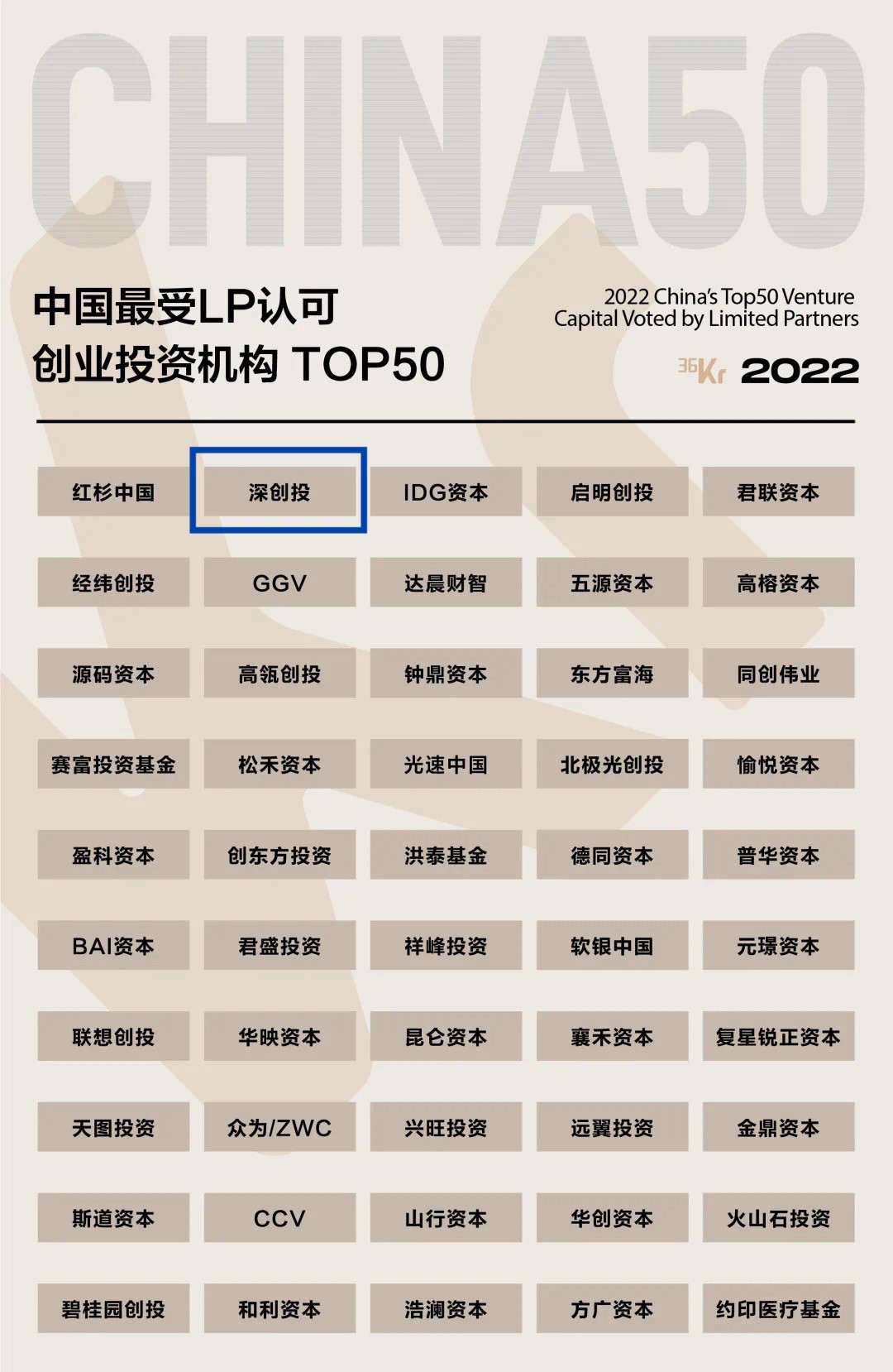 2022中国最受LP认可创业投资机构TOP50第二名