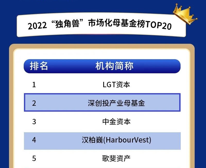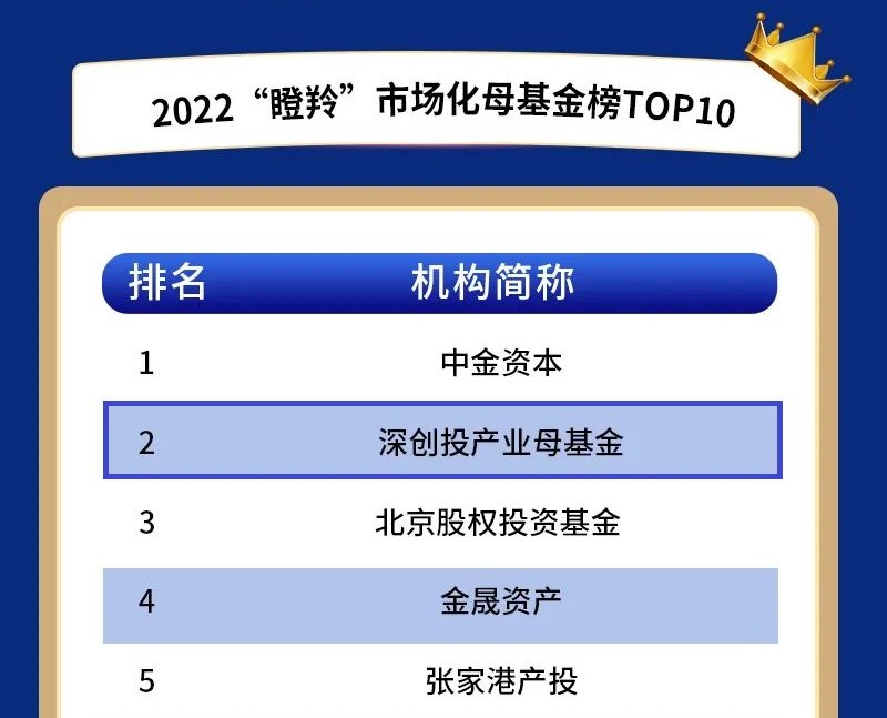 2022“瞪羚”市场化母基金榜TOP10第二名