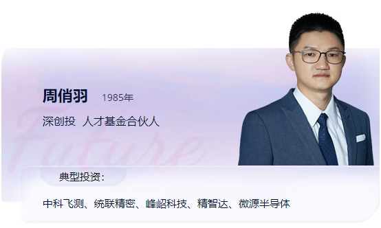 周俏羽博士现任色色啦 人才基金合伙人,典型投资案例包括中科飞测、统联精密、峰岹科技、精智达、微源半导体等。