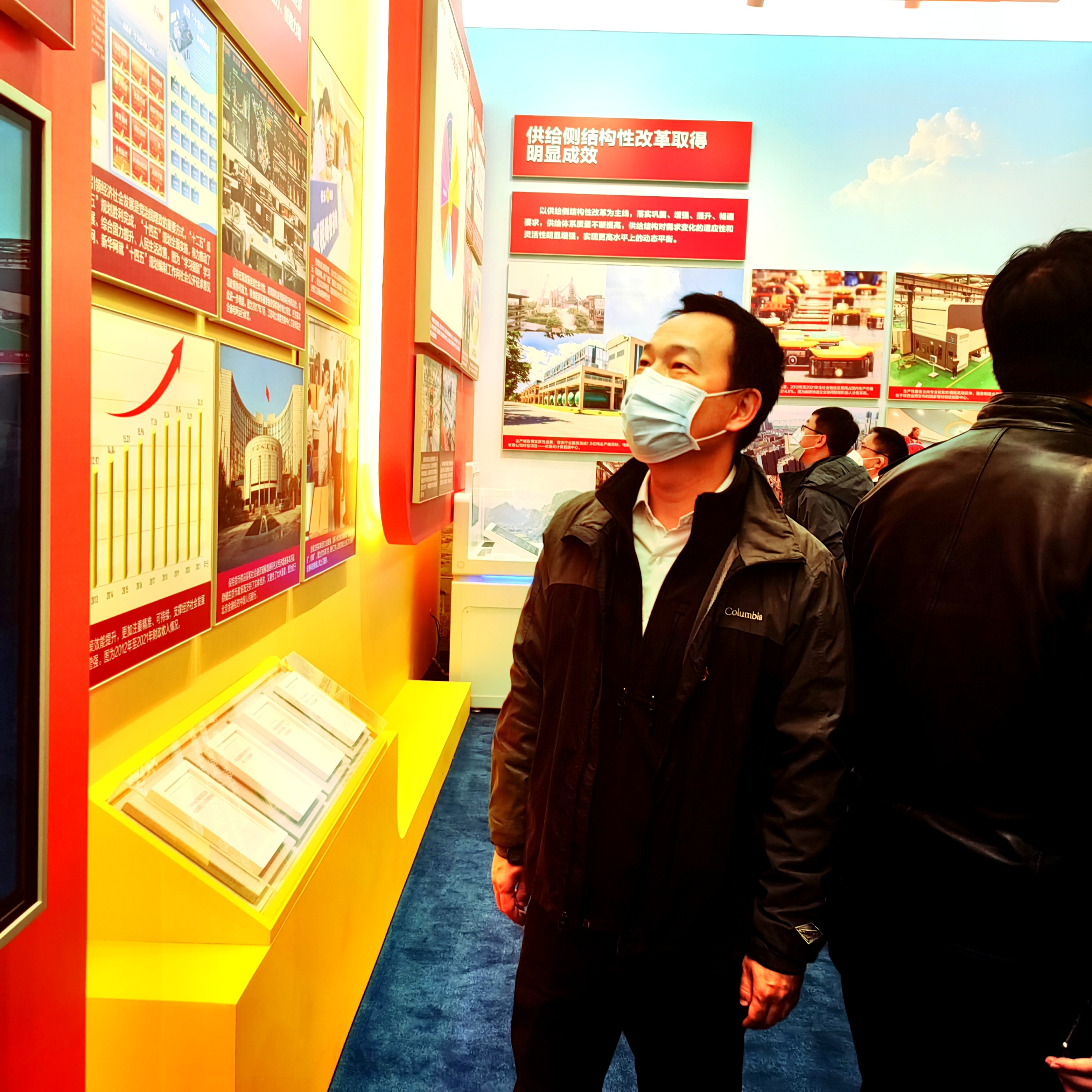 参观人员仔细观看展览的实物模型、生动视频、图片图表,认真聆听讲解。展览中,航空、航天等多项国之重器成果在展览中集体亮相;重大科技基础设施等技术成果一一登场;首批9单基础设施不动产投资信托基金项目现场图片引人注目,其中由集团牵头推动的红土创新盐田港REIT正是国内首批9单公募REITs之一,这让现场参观的员工心潮澎湃、倍受鼓舞。