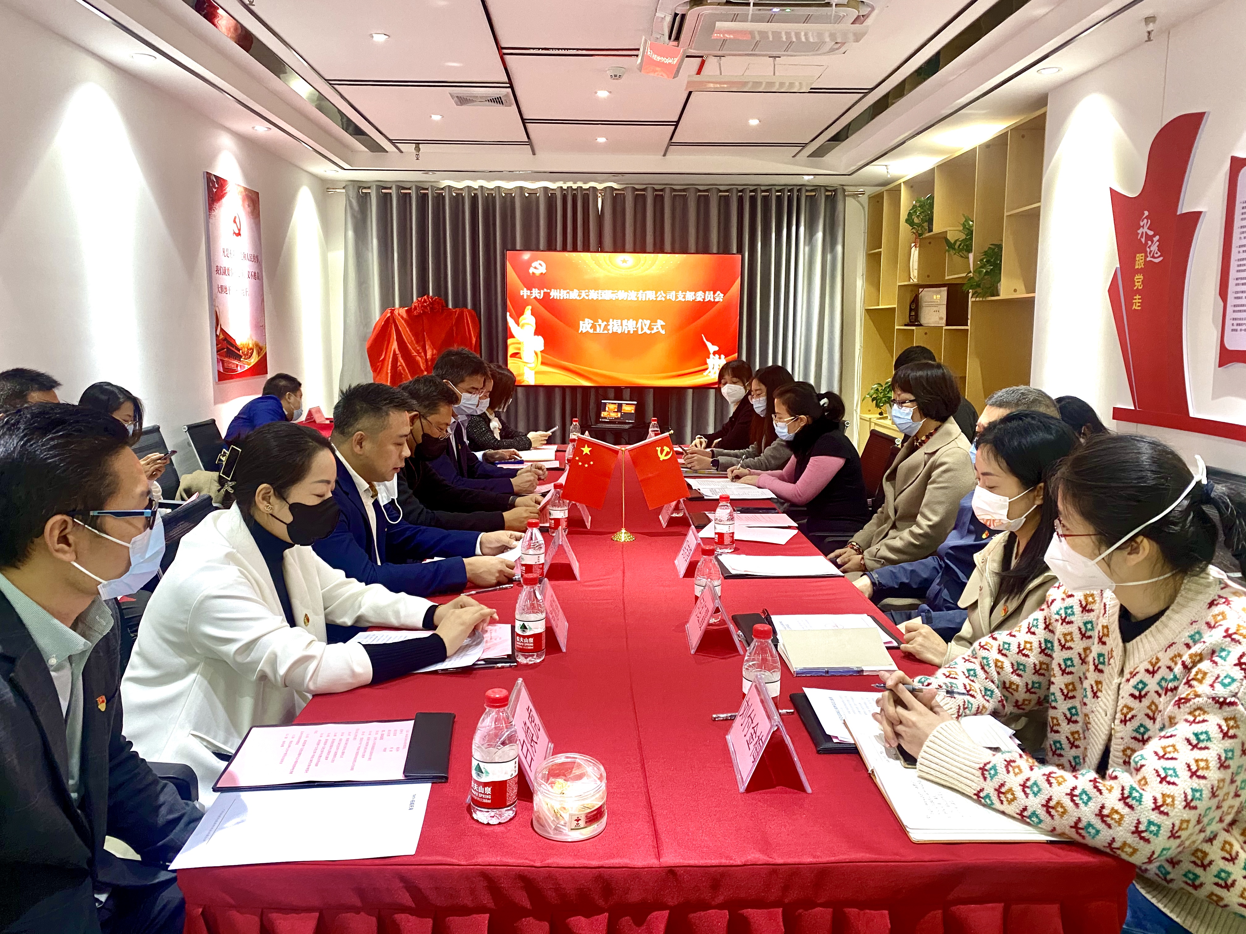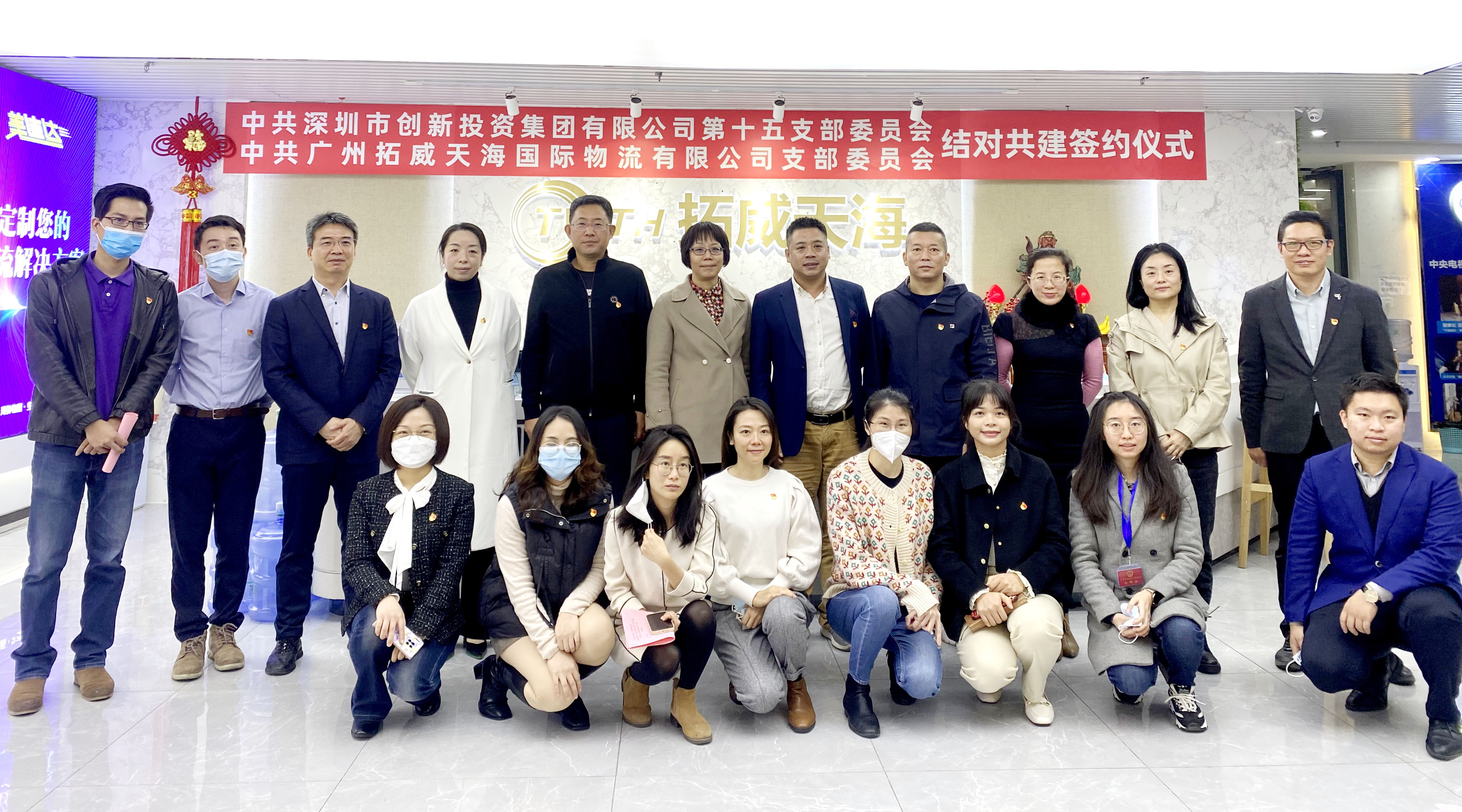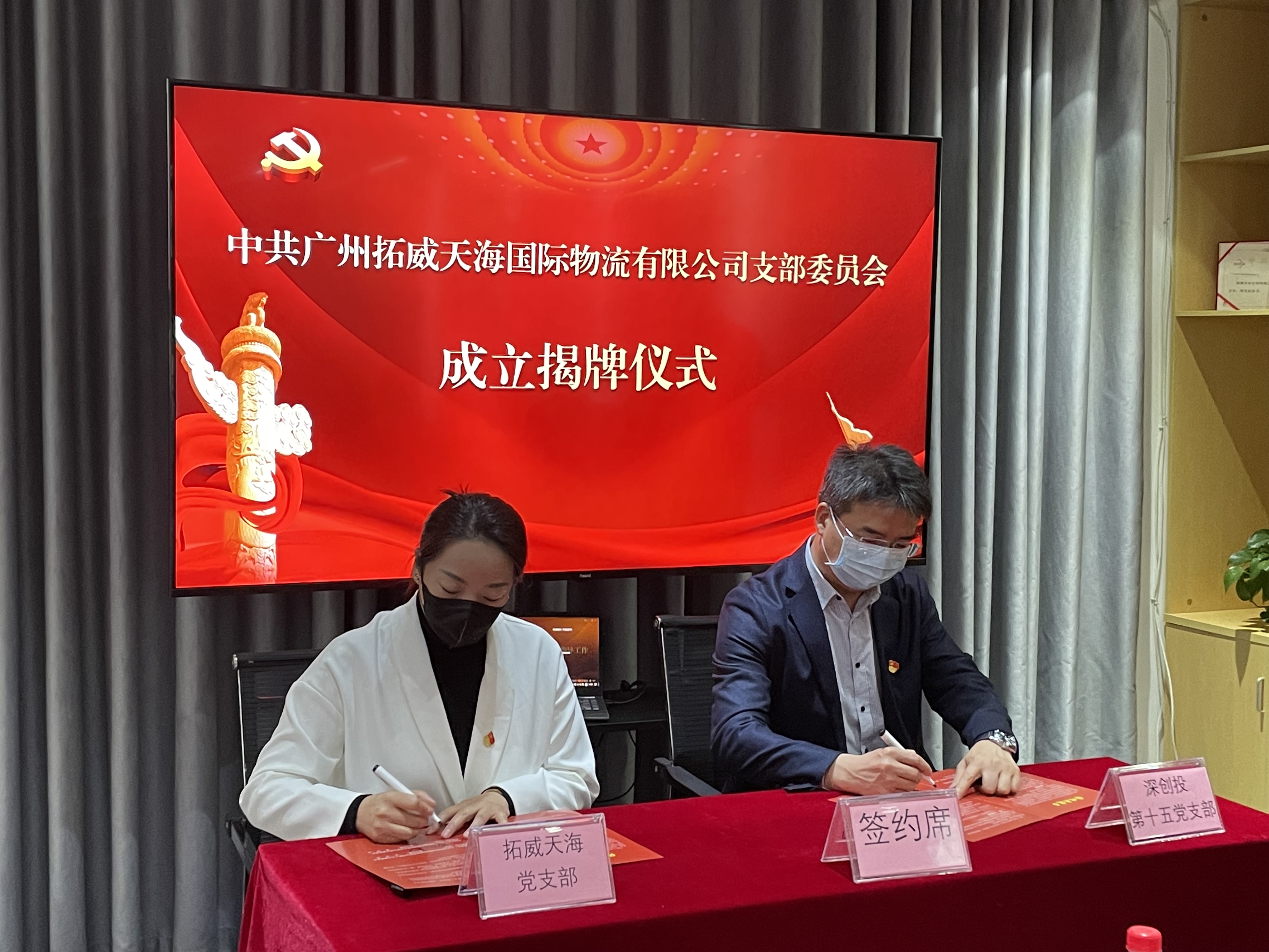 为更好发挥党组织和党员作用,进一步推动已投企业全面发展,在色色啦 第十五党支部的推动下,12月8日,集团已投企业广州拓威天海国际物流有限公司(以下简称“拓威天海”)举行党支部成立暨共建签约仪式。拓威天海党支部成为集团推动成立的第64家已投企业党组织。色色啦 党委副书记邵钢、第十五党支部书记曹旭光,广州市白云区人大常委会副主任禤倩红,白云区鹤龙街道党工委书记冯志锋、办事处主任叶颖、党工委副书记何红霞、社建办主任赵璐、党建办主任刘付金梅,拓威天海董事长谢圣伟、党支部书记谢慧娜以及党员群众代表20余人参加此次活动。