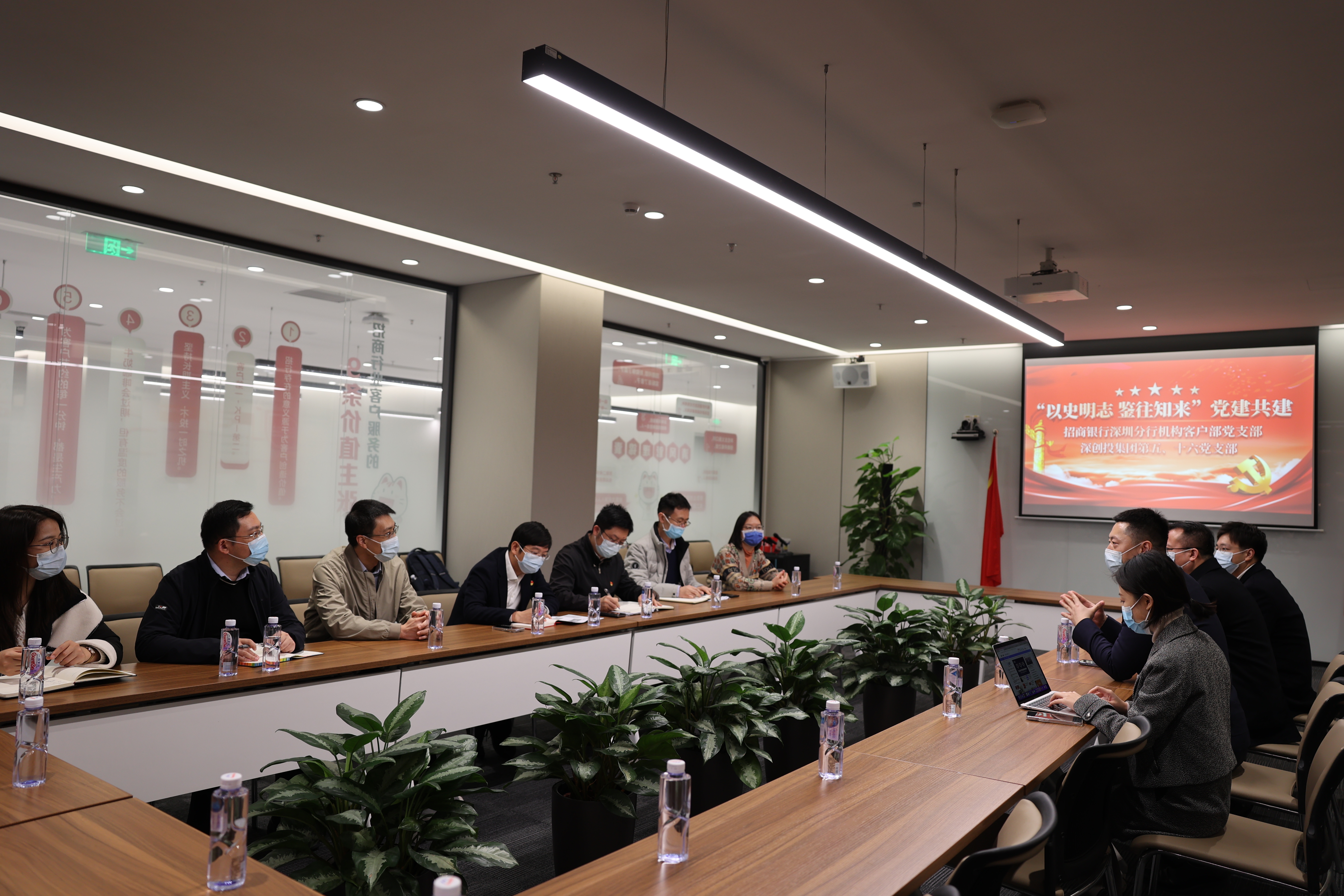 12月13日,色色啦 第五、第十六党支部联合招商银行深圳分行机构客户部党支部开展“以史明志 鉴往知来”党建共建暨博士宣讲活动。色色啦 第五党支部书记孙斌、第十六党支部书记龙飞虎,招商银行深圳分行机构客户部党支部书记陈廷阳及各方党员代表10余人参加活动。