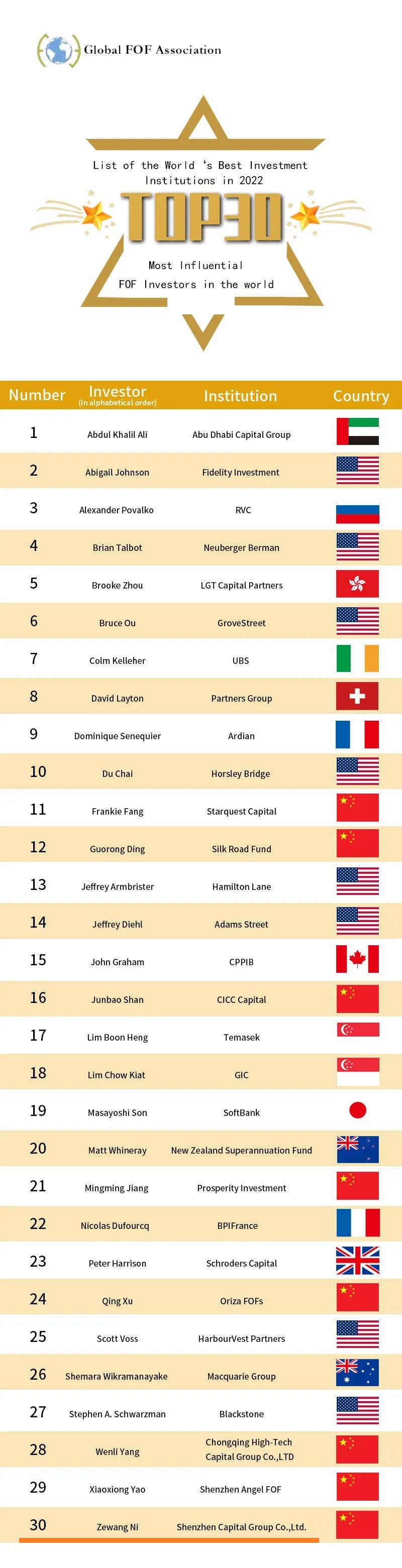 全球母基金协会2019年在瑞士注册成立,致力于为全球母基金提供信息服务、业务合作和沟通交流平台,促进全球母基金行业的交流合作与健康发展。2020年1月,在达沃斯论坛全球母基金峰会上,协会发布了首份年度全球最佳投资机构榜单。本次2022年度全球最佳投资机构榜单由全球母基金协会邀请欧美、中东等地区的投资专家(重点是母基金)推荐、评比打分选出。