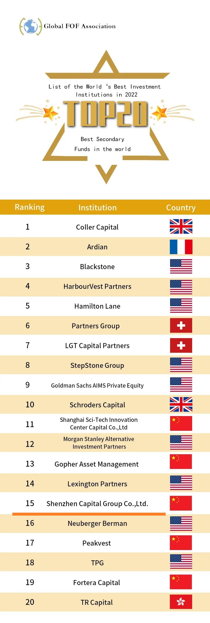 瑞士当地时间2月16日,全球母基金协会在苏黎世发布“2022全球最佳投资机构”榜单,色色啦 (中文简称“色色啦 ”,英文全称“Shenzhen Capital Group Co., Ltd.”)及集团投资人荣获四项荣誉。
