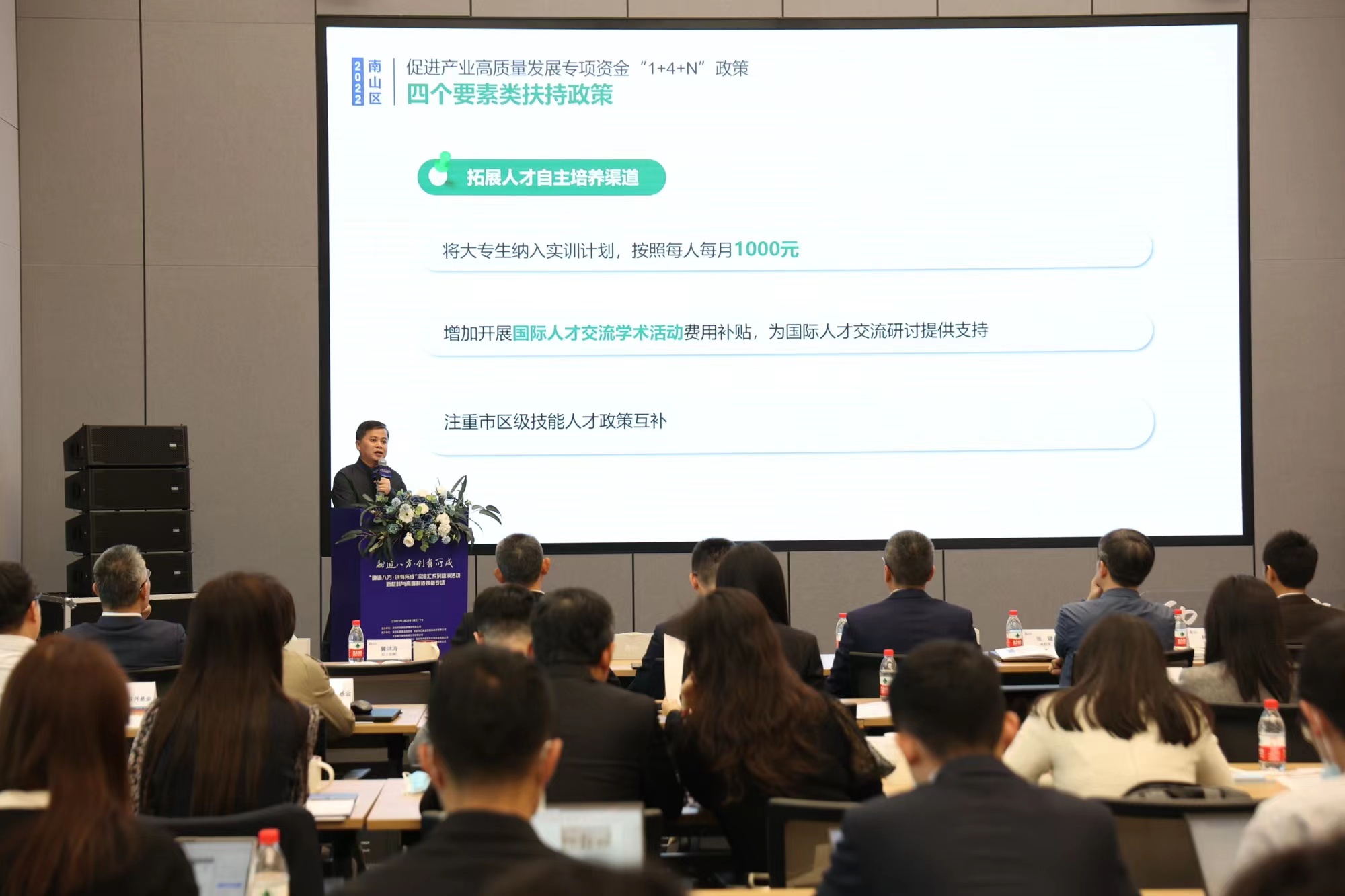 进入主题分享环节,深圳市南山区企业发展服务中心政策服务部部长王春明首先进行了题为《南山区促进产业高质量发展专项资金政策》的分享,详细解读了《南山区促进产业高质量发展专项资金管理办法》《南山区人才工作发展扶持措施》《南山区企业融资扶持措施》《南山区产业用房扶持措施》及《南山区服务企业保障措施》。