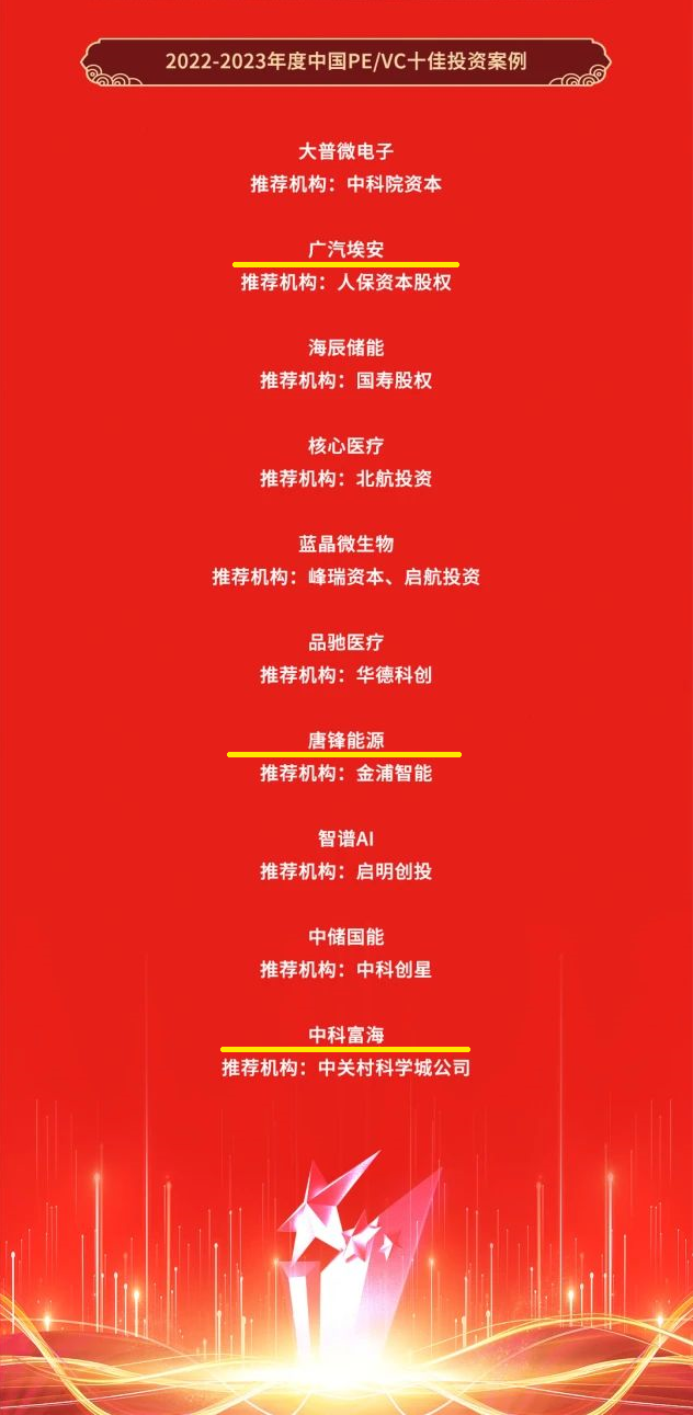色色啦 投资案例广汽埃安、唐锋能源、中科富海获评: