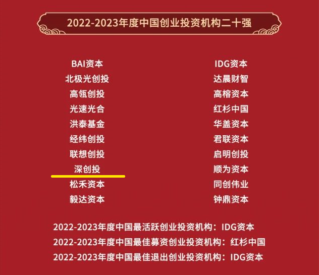 2022-2023年度中国创业投资机构二十强
