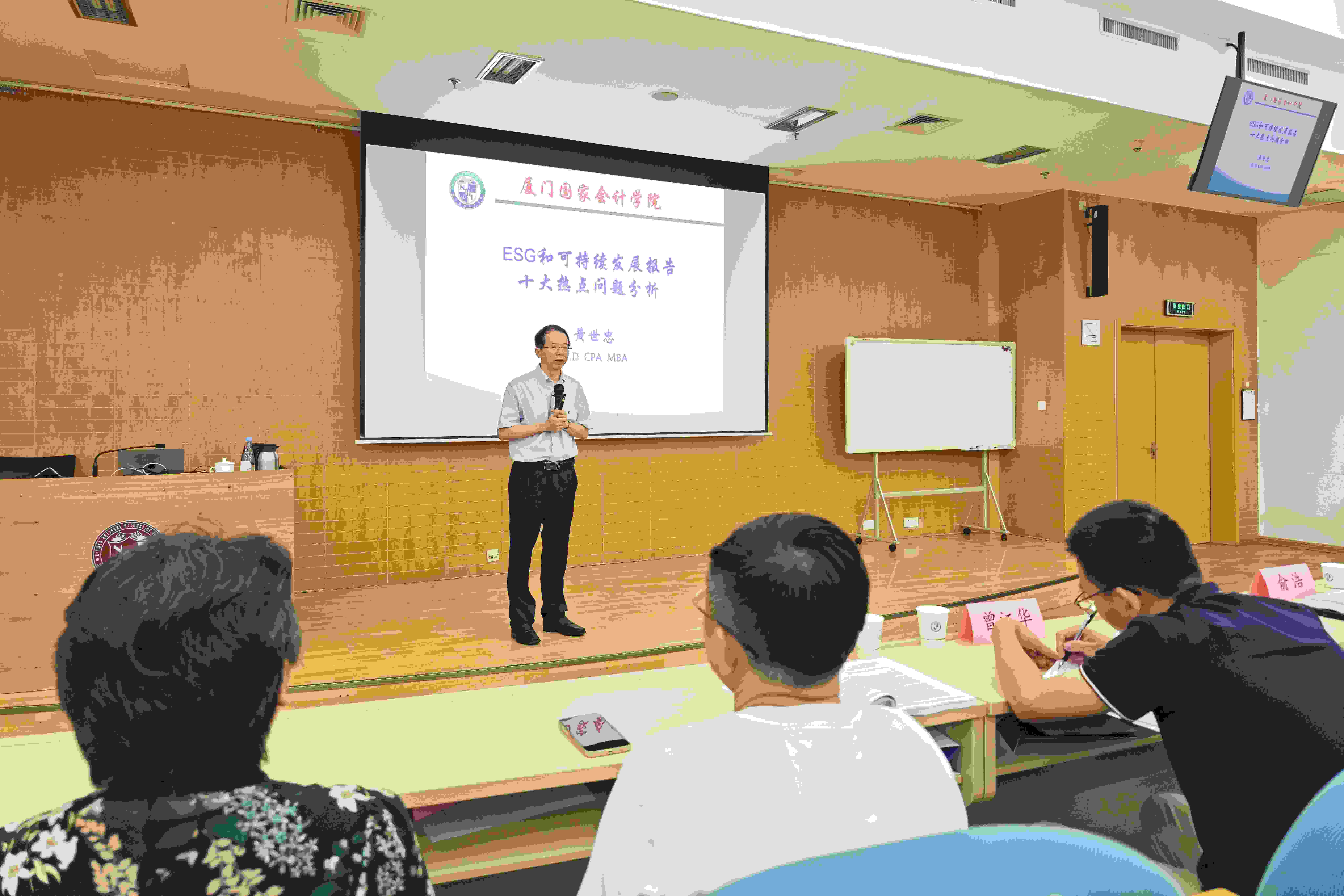 厦门市政协副主席、厦门国家会计学院原院长黄世忠教授为培训班作ESG和可持续发展报告主题分享,阐述了历史沿革、发展趋势、报告目标、报告内容、报告定位、优先议题、适用标准、经营边界、财务影响和独立鉴证十大热点问题。