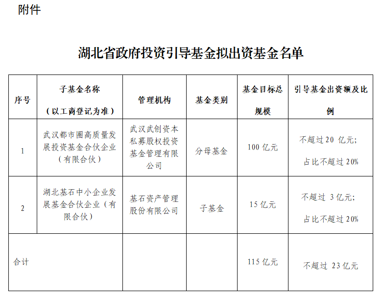 关于湖北省政府投资引导基金拟出资基金的公告