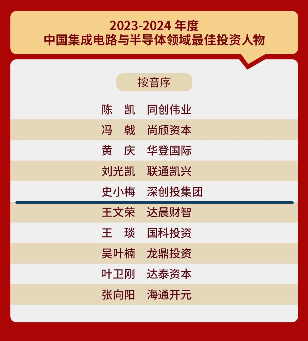 融中2023-2024年度中国集成电路与半导体领域最佳投资人物