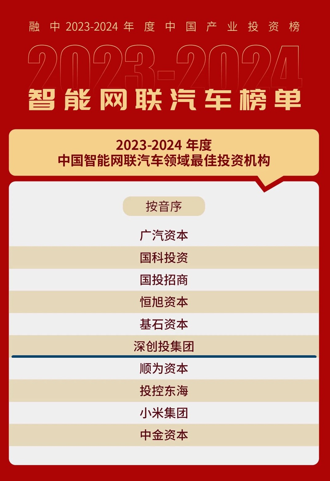 融中2023-2024年度中国智能网联汽车领域最佳投资机构