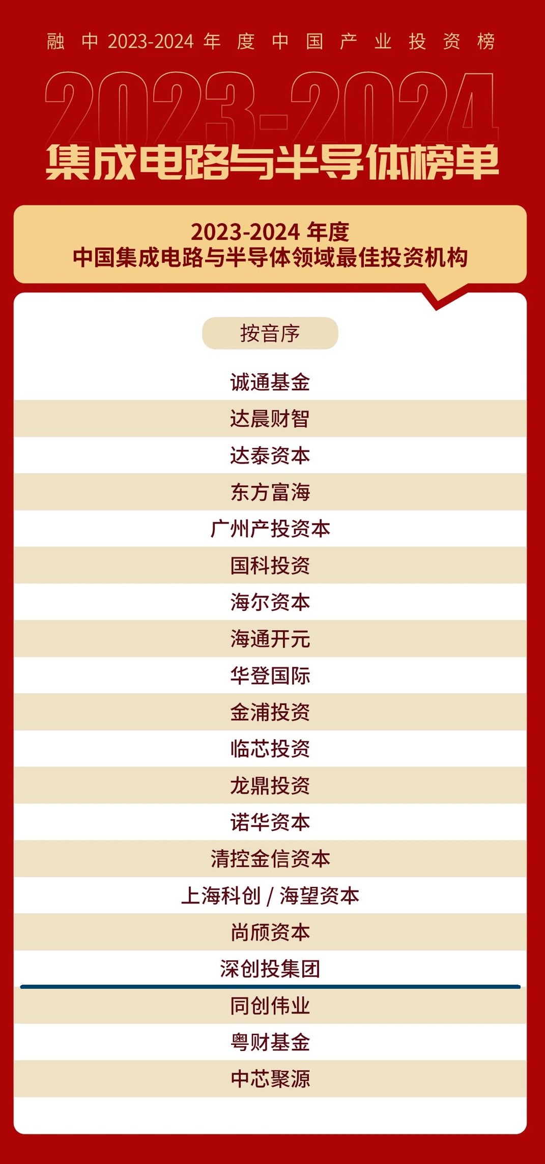 融中2023-2024年度中国集成电路与半导体领域最佳投资机构