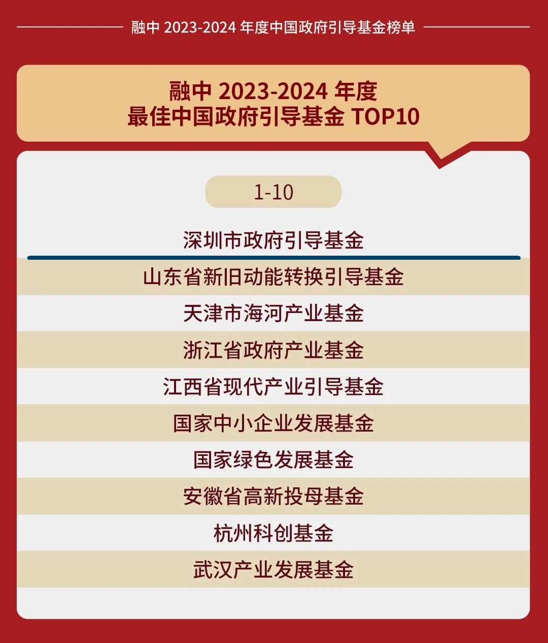 融中2023-2024年度最佳中国政府引导基金TOP10第一名