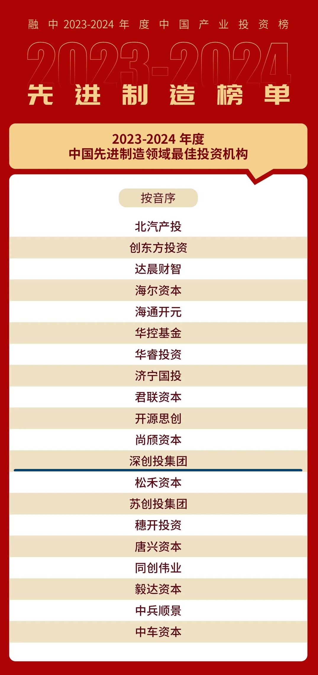 融中2023-2024年度中国先进制造领域最佳投资机构