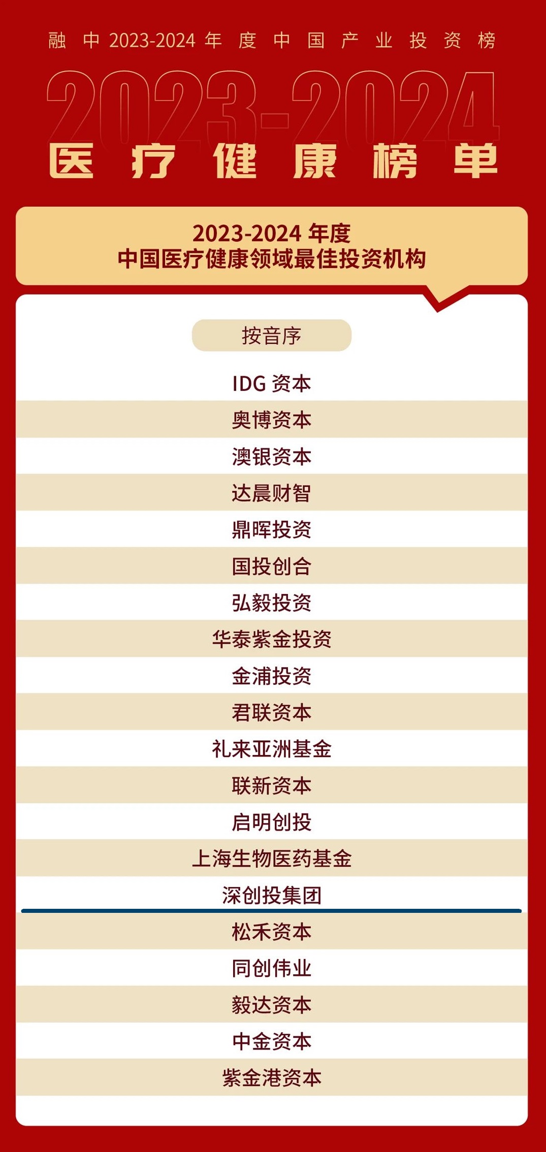 融中2023-2024年度中国医疗健康领域最佳投资机构