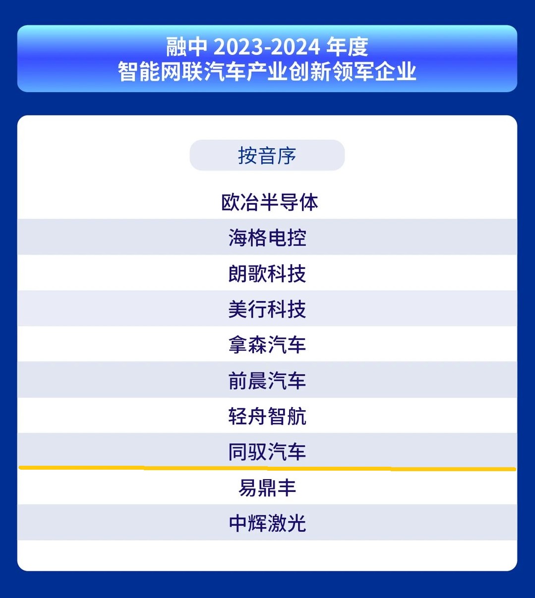 融中2023-2024年度智能网联汽车产业创新领军企业