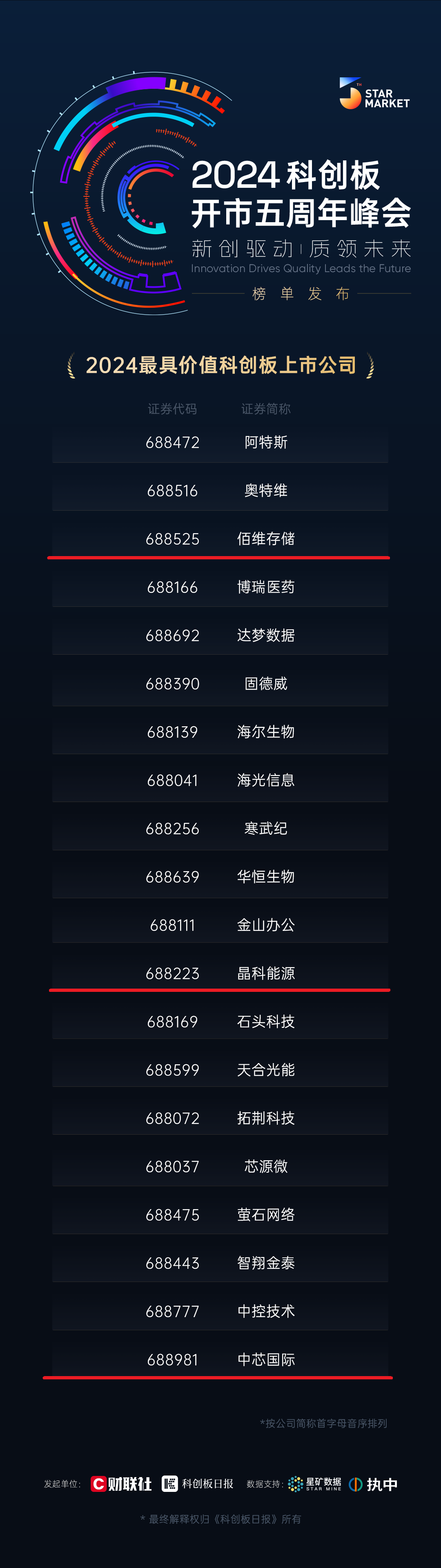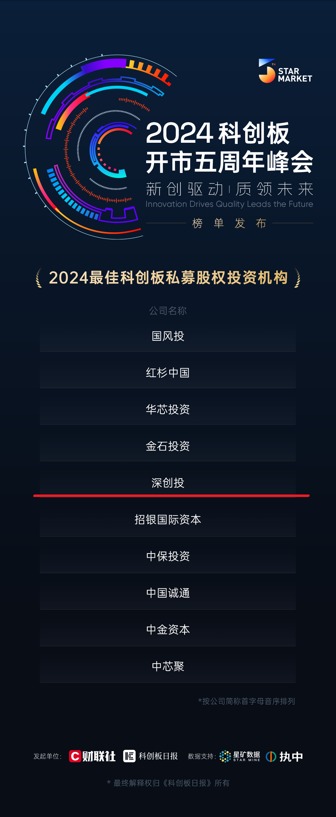 本次评选覆盖500余家科创板公司、百家私募投资机构,综合考量多个维度,依托公开数据,执行严格标准。评选活动旨在以榜单为指引,为企业赋能、为产业助力、为创新鼓掌,激励更多科创同行者共进。
