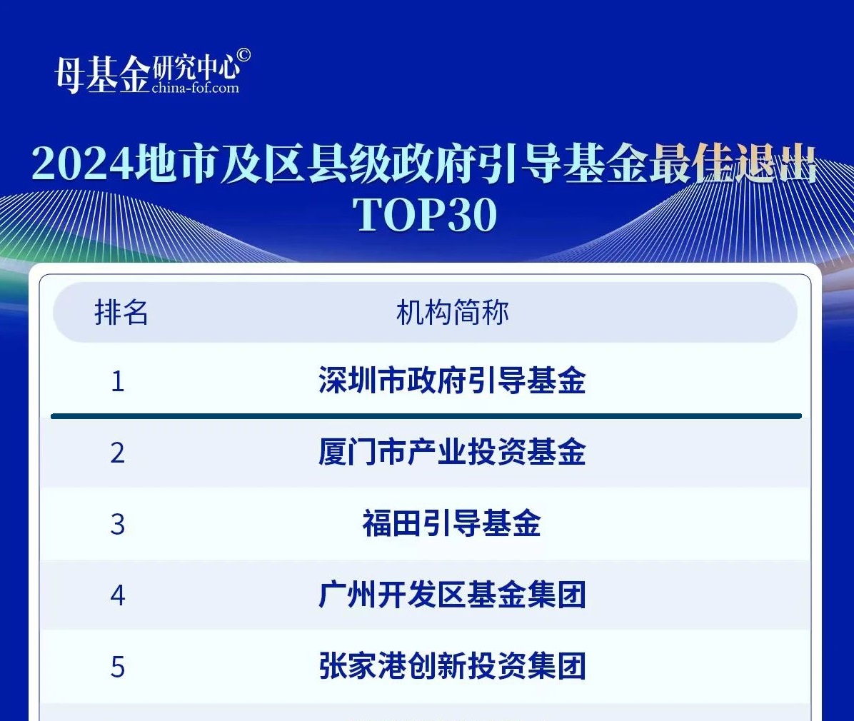 2024地市级及县区级政府引导基金最佳退出TOP30第一名