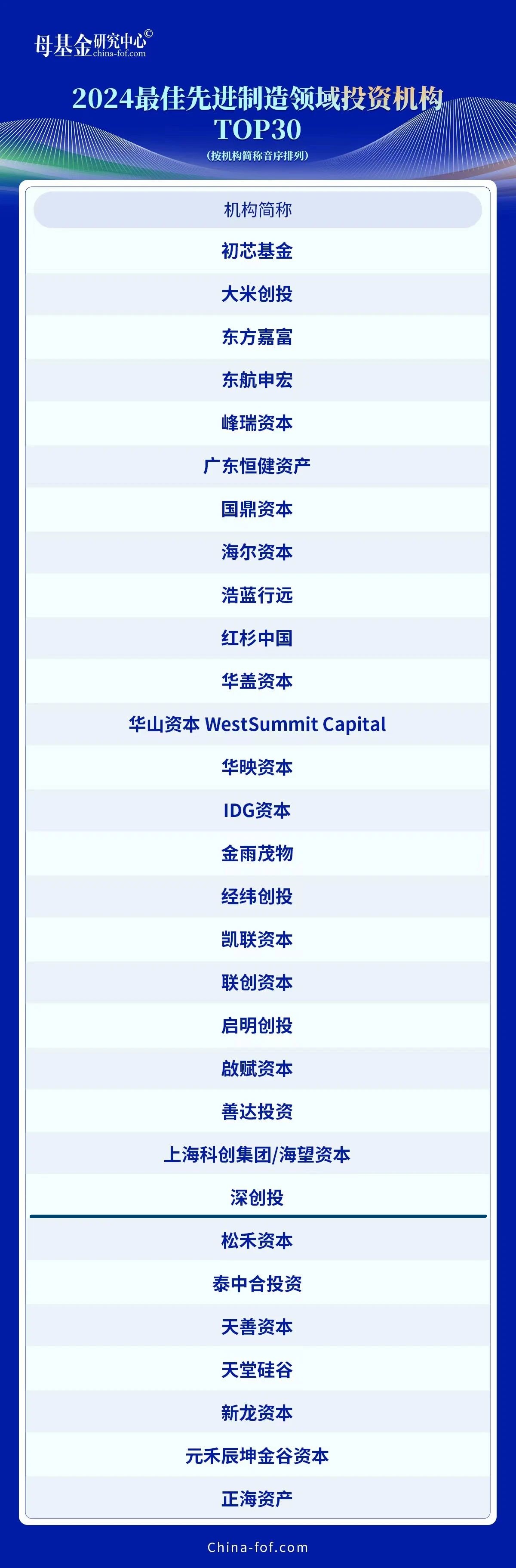 2024最佳先进制造领域投资机构TOP30